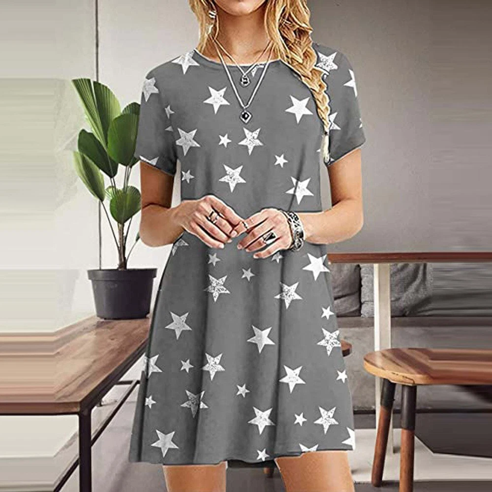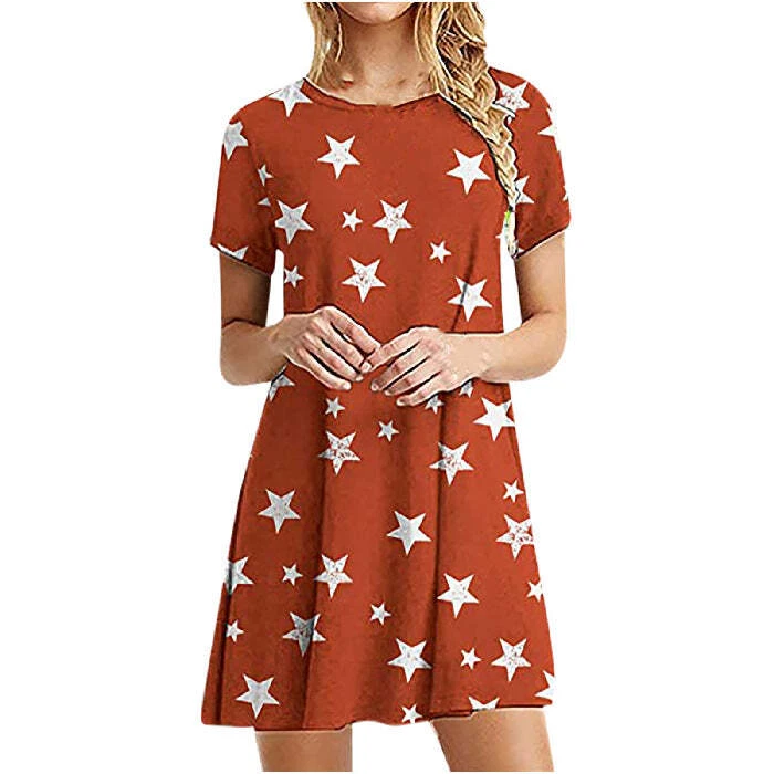 Product information: Fabric name: polyester fiber Style: sweet Pattern: Printing Process: Printing/Dyeing Style: Basic Combination form: single piece Skirt length: short skirt Skirt type: A-line skirt Collar type: round neck Sleeve type: conventional sleeve sleeve length: short sleeve Waist type: loose waist Main fabric composition: polyester fiber (polyester) The content of the main fabric ingredient: 71%-80% Main fabric composition 2: polyester fiber (polyester) The content of main fabric ingredient 2: 71%-80% Lining composition: polyester fiber (polyester) Lining ingredient content: 71%-80% Color: orange, gray, green Size Information: Size: S, M, L, XL, XXL Note: 1. Asian sizes are 1 to 2 sizes smaller than European and American people. Choose the larger size if your size between two sizes. Please allow 2-3cm differences due to manual measurement. 2. Please check the size chart carefully before you buy the item, if you don't know how to choose size, please contact our customer service. you know, the different computers display colors differently, the color of the actual item may vary slightly from the following images. Packing list: Dress x1