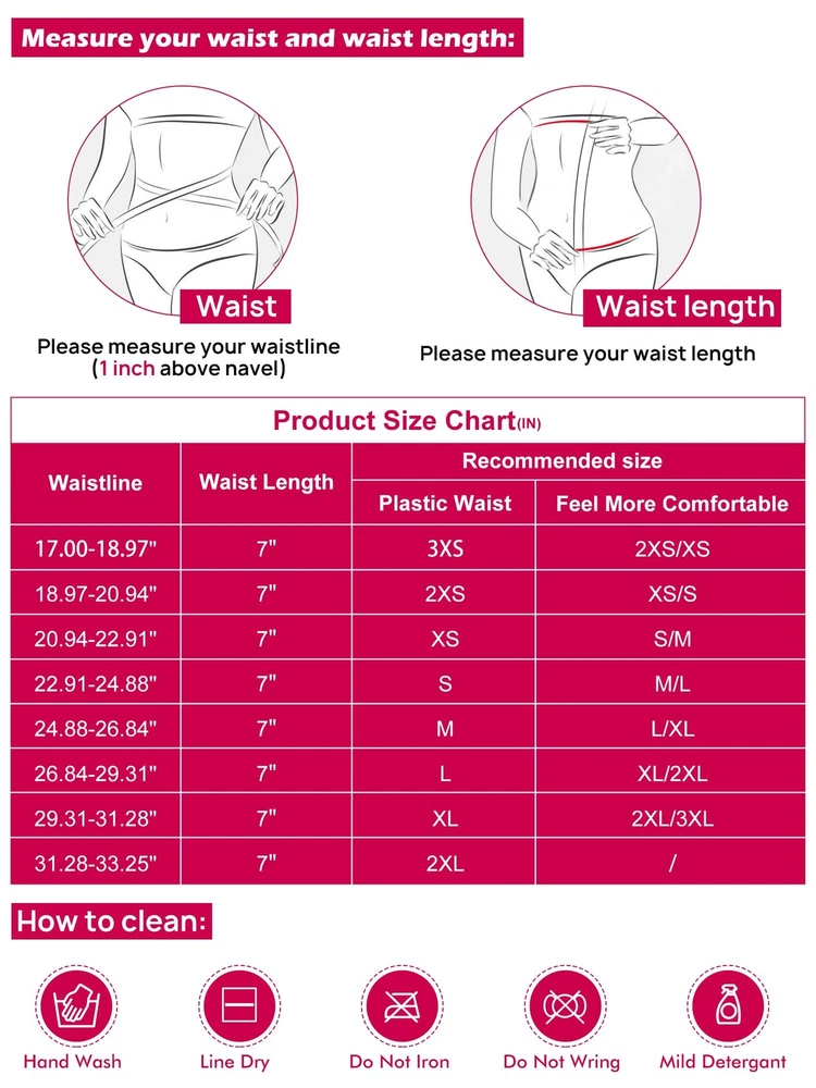 This waist trainer is a game-changer for petite frames! The 7-inch short torso design fits perfectly without rolling or digging in, making it super comfortable for all-day wear. The latex material feels sturdy yet flexible, providing great shaping and support. Love how it stays in place during workouts while smoothing my silhouette under clothes. The sizing guide was spot-on—just measure your natural waist for the perfect fit. Ideal for shorter torsos or younger users who struggle with standard cinchers being too long. Noticeable waist-slimming effect without sacrificing comfort. Highly recommend for anyone wanting a discreet, effective waist trainer!
