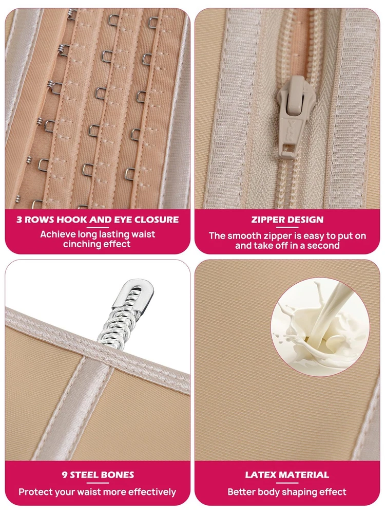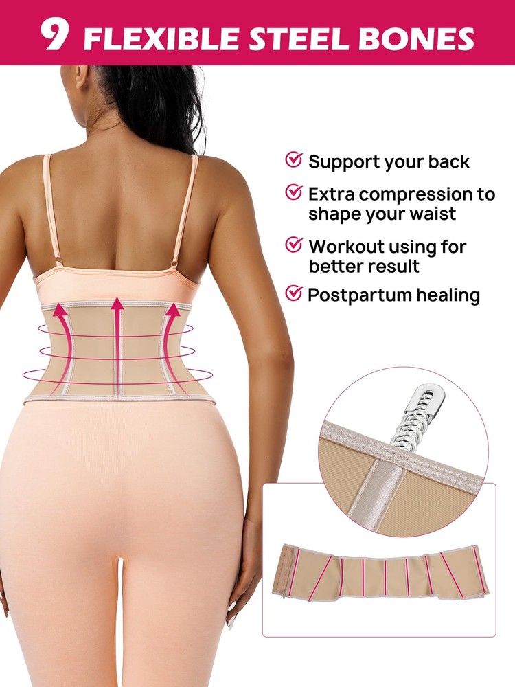 HOW TO CHOOSE RIGHT SIZE: The waist trainer is different from our other clothes, please read our size chart before your purchase, our size chart is in the product pictures. And please choose the size according to your real waist circumference. 7 INCHES SHORT TORSO: The super short torso of the waist trainer shorter than the 9 inches the 11.5 inches torso waist trainer. It is more suitable for very short torso, short short torso, young girls, the women of small body. And the waist cincher is also fit for working on office, outdoor sports, gym fitness, yoga, postpartum belly abdomen corsets etc. The 7” short torso waist trainer will make your body more flexible than other long torso waist training. SHAPE HOURGLASS FIGURE: The waist corsets made off the high elastic latex, and have a great function of ductility, high compression, reduce waist circumference up to 3-5 inches instantly; And shape the perfect hourglass waist and tighten abdomen for you. BURN EXCESS FAT: It is also sport and fitness waist trainer, it can be worn for fitness, used for postpartum belly abdomen corsets, increase blood flow to the torso and help you burn excess fat of your abdomen to lose weight. The slimming tummy control also can reduce your stomach. KEEP CORRECT BODY POSTURE: The spiral steel bones of the tummy trainers are covered in front and back for offering support, smooth waist line, and make your waist stiffness and keep your straight and prevent slouching. And the waist shaper also can protect back and reduce back pain.