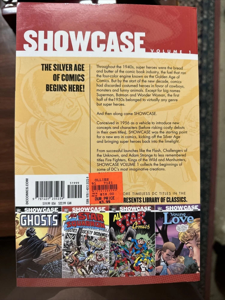Showcase Presents: Showcase #1 is a comic book published by DC Comics in September 2012. It features a collection of stories from the Challengers of the Unknown superhero team, including their adventures in the Wild West and battles against various villains. The book includes artwork by many artists and writers, including Jack Miller, Robert Kanigher, Wayne Boring, Mort Meskin, Dave Wood, Frank Giacoia, Joe Simon, Curt Swan, Win Mortimer, Otto Binder, Harry Lazarus, Mike Sekowsky, Jack Kirby, Joe Kubert, Bill Ely, Al Plastino, Bob Brown, Russ Heath, Mike Esposito, John Prentice, Arnold Drake, Sy Barry, John Broome, Jerry Coleman, Edmond Hamilton, Jack Schiff, Stan Kaye, Marvin Stein, Carmine Infantino, Gil Kane, Ruben Moreira, Gardner Fox, Rosalind Kirby, Bernard Sachs, Joe Giella, and Ross Andru. The book belongs to the Showcase series and is part of the Modern Age era of comics. It is written in English and has a Western, Crime & Thriller, Superheroes, Adventure, Non-Fiction, Mystery, Historical, and Science Fiction genres. The cover artists include Frank Gi