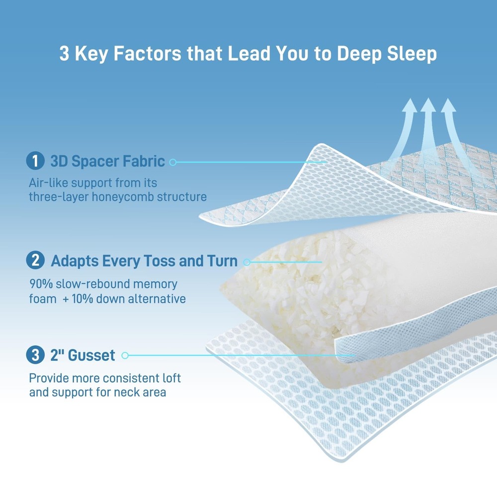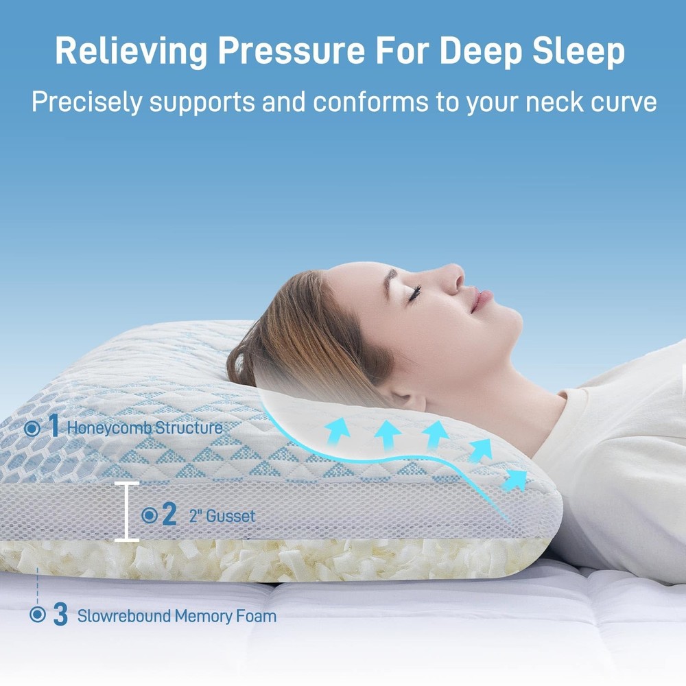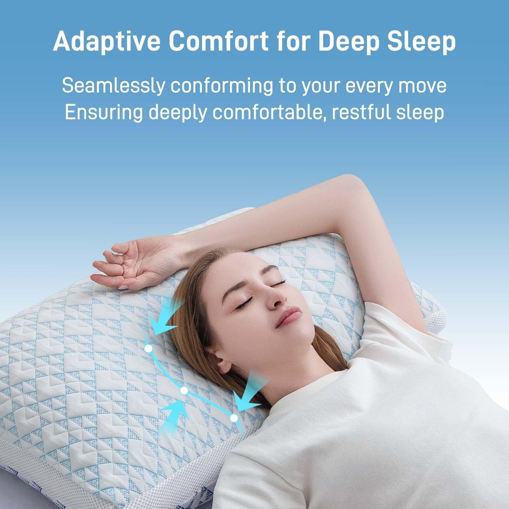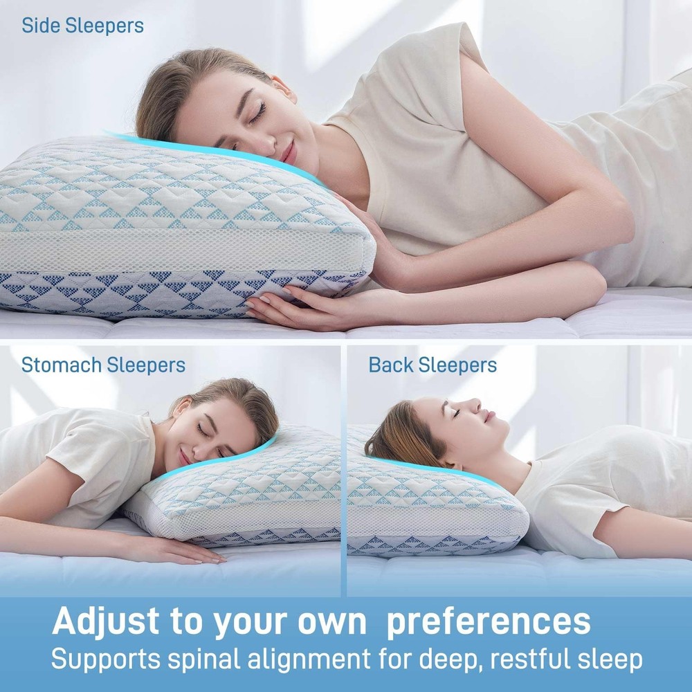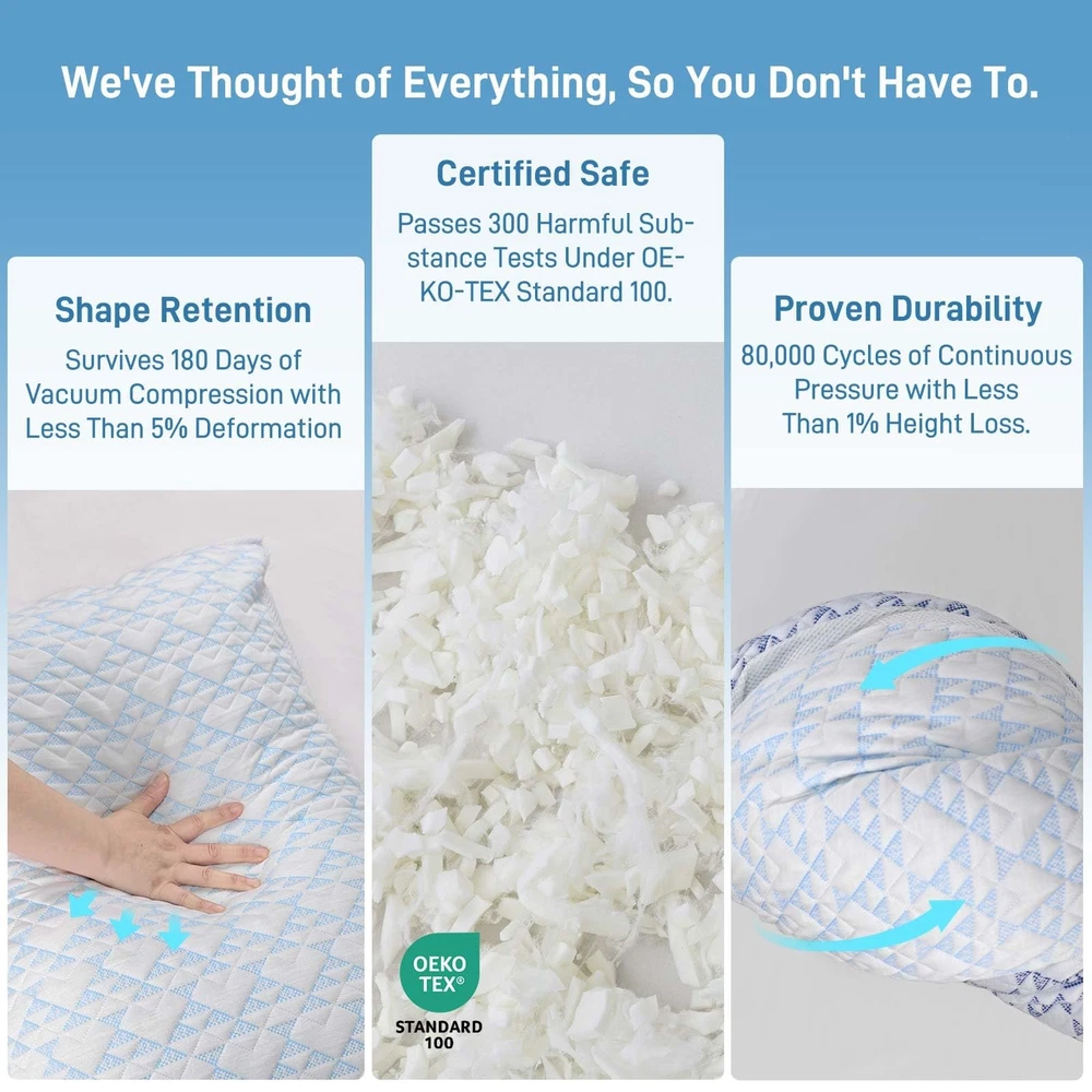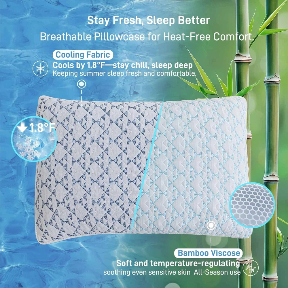 soft sleep adjustable cooling best hotel for adults california cal shredded memory foam king sized bed hotel hypoallergenic 20x36 luxury set of 2 pack for side stomach back sleepers for stomach sleeping almohadas almoadas para dormir 【CUSTOMIZED SUPPORT】 Ensure optimal support by adjusting your pillow height by adding or removing shredded memory foam, tailored to your sleep habits for excellent neck alignment. Extra filling? Keep it handy in the included storage bag! 【REFRESHING COOL COMFORT】 All bedding fabrics are influenced by temperature. Our pillowcase features a double-sided design: one side is made of cooling ice silk fabric, while the other side is soft and breathable with bamboo viscose fabric. For the coolest sleep experience, we recommend using the cool side with an air conditioner or fan to enjoy a refreshing and comfortable night's sleep. 【STAY COZY ALL-NIGHT】 Our shredded memory foam pillow gently contours to your head and neck, providing optimal alignment, relieving pressure, and ensuring you enjoy deep sleep. 【HYPOALLERGENIC & SAFE MATERIAL】 Our pillows are filled with hypoallergenic, freshly shredded memory foam. OEKO-TEX certified, they offer a safe, clean sleep environment, free from harmful substances and odors—ideal for those with allergic skin. 【DEDICATED CUSTOMER SUPPORT】 ONLY the outer pillowcase is machine washable—please DO NOT wash the memory foam fill or inner pillowcase. If you have any questions or concerns, our friendly team is here to assist you within 24 hours. We're committed to ensuring your satisfaction!
