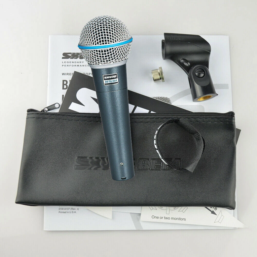 Shure Beta 58A Supercardioid Dynamic Vocal Microphone US SHIP Product Description Notice: Please don't open cases or return requests without contacting me. If you have any questions about quality, shipping or other problems, please contact me first via eBay message. I will give you a satisfy solution. Item Description: Shure Beta 58A Supercardioid Dynamic Vocal Microphone About this product Product Identifiers Brand Shure MPN BETA58A GTIN 0042407082562, 0300263036595, 0042406148887 UPC 0042407082562, 0300263080901, 0300263036595, 0042406148887 Model Beta 58A eBay Product ID (ePID) 23009500938 Product Key Features Connectivity Wireless, Wired Form Factor Dynamic Microphone Features Mountable, Frequency Response Tailored, Wireless Handheld, Flexible and Easy Mounting, Adjustable Stand Dimensions Weight 0.62lbs. Additional Product Features Connector(s) XLR 3 Pin, USB Wireless Technology Not Applicable Suited For Studio Recording Microphone Form Factor Handheld/Stand-Held Pickup Pattern Supercardioid Type Dynamic Microphone Instrument Microphone Shure Beta 58A Supercardioid Dynamic Vocal Microphone. Package Includes: 1pc Microphone Payment Delivery details Terms of sales About us Contact us Payment More orders,more cheaper. Delivery details 1 .Our orders are usually shipped within 1-2 working days after payment received unless there are problems with the order. If this case happened, we will contact you via your eBay email address or telephone number. 2.Normally orders are processed on working day. Terms of sales 1.We offer 30 days return policy. Please contact us within 14 days from the date you receive your order if you have any issues with the product and would like to return. 2.All returned items MUST BE in the original packaging and please provide us with the shipping tracking number, specific reason for the return, and your eBay ID. 3.We will refund YOUR FULL WINNING BID AMOUNT, upon receipt of the item in its original condition and packaging with all components and accessories included. 4.Buyer is responsible for return shipping cost. 5.If we send the wrong item to you, please contact us and we will take full responsibility and fix it soon. About us 30 days Return Policy / Answer within 24 hours! Contact us We strive for 100% customer satisfaction! Positive Feedback is very important to us. If you have any questions, please feel free to contact us via "Ask seller a question" . We will reply your email within 24 working hours:) Brand Shure Form Factor Dynamic Microphone Polar Pattern Supercardioid Model Beta 58A Connectivity Wired, Wireless MPN BETA58A Features Adjustable Stand, Flexible and Easy Mounting, Frequency Response Tailored, Mountable, Wireless Handheld