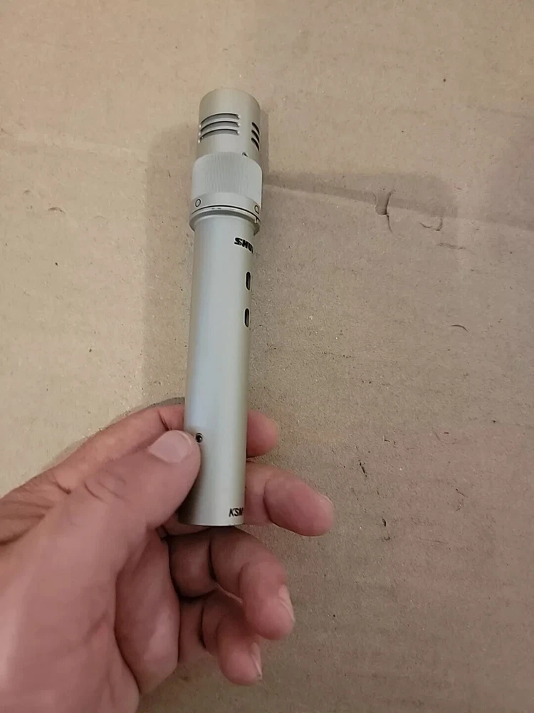 Used Shure KSM141 in great condition. Dual pattern instrument microphone offers transition between cardioid and omnidirectional patterns and features extended frequency response, pad for handling SPLs, a gold-layered Mylar diaphragm, and a subsonic filter for low frequency rumble.