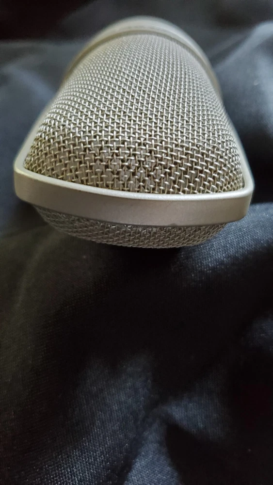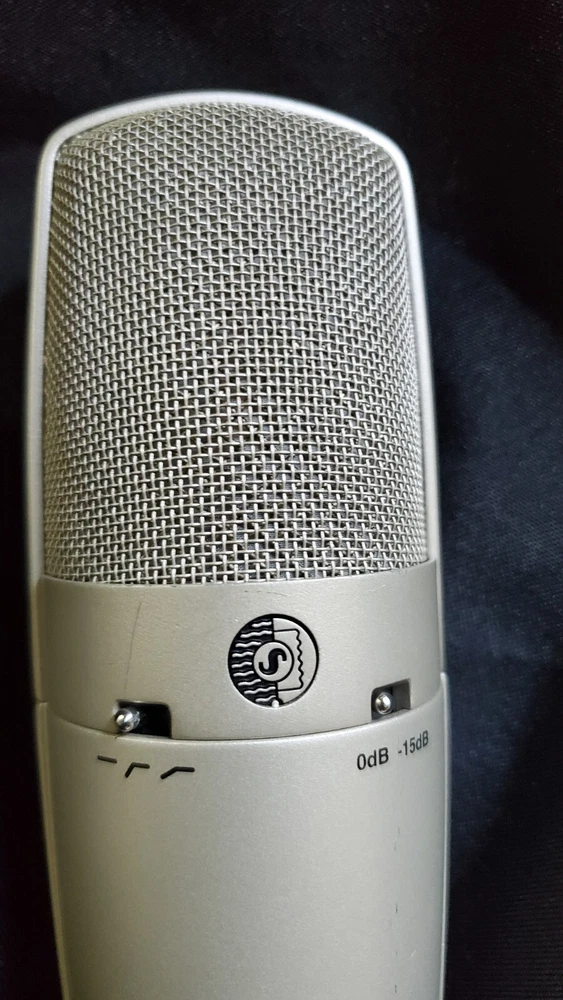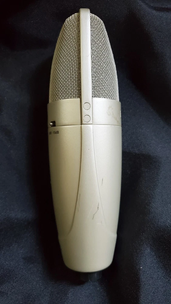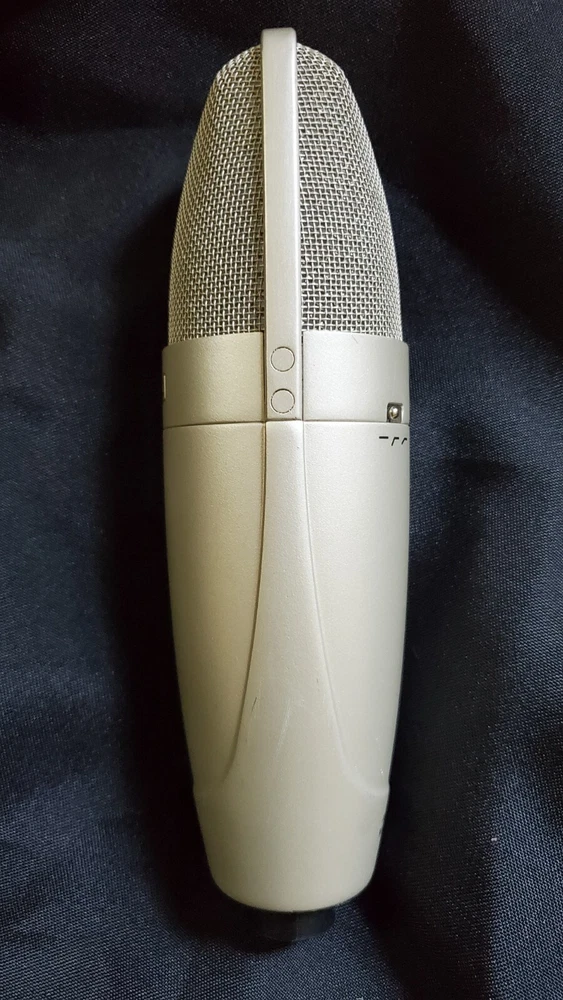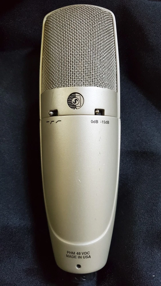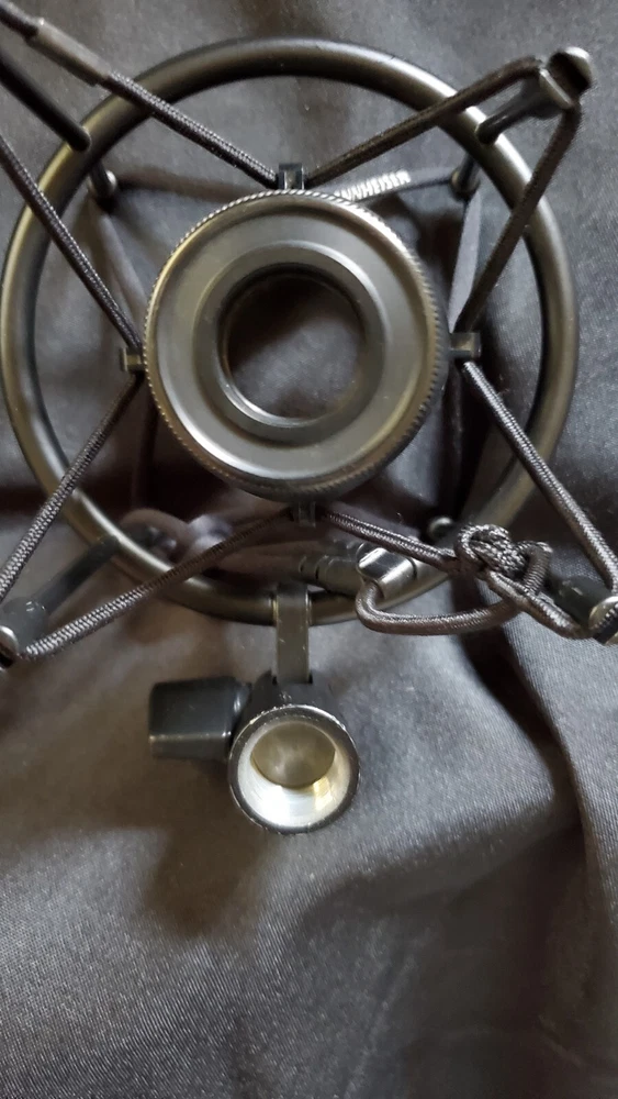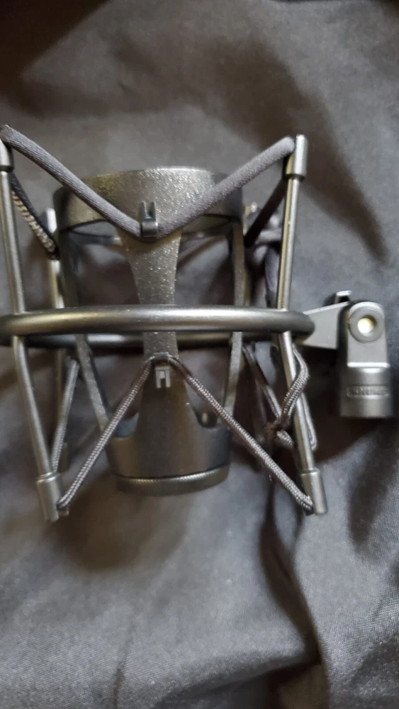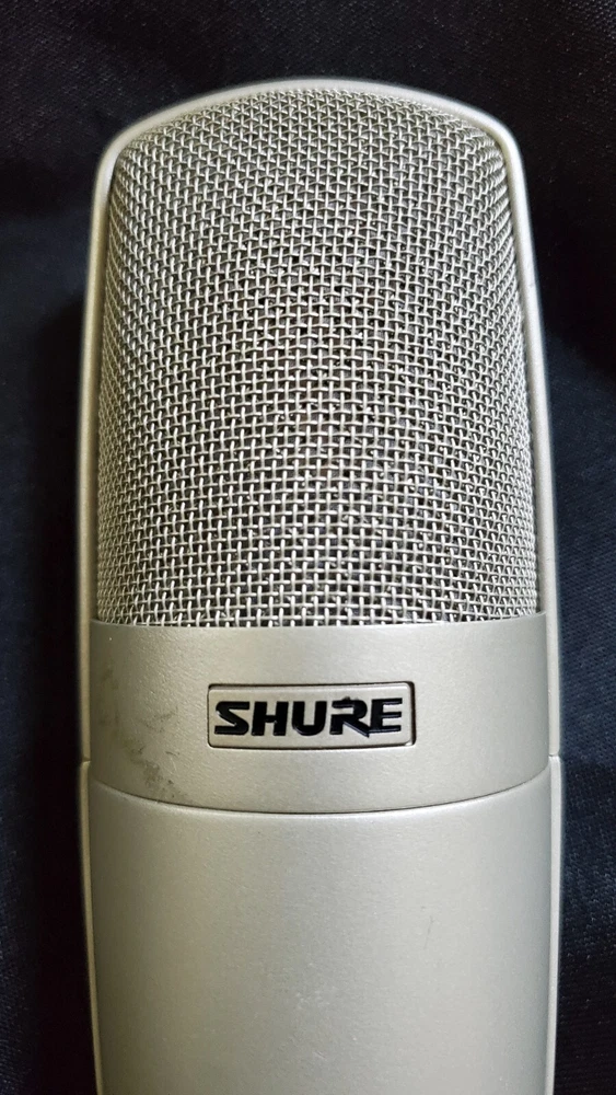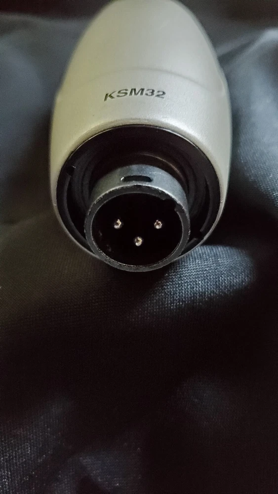 Used Shure Ksm32 champagne large diaphragm condenser microphone with shock mount and wind screen. Original shock mount bands have been replaced. Microphone works great but has a few scratches. Please see photos.