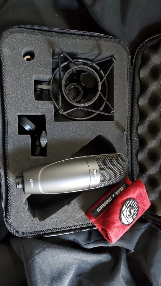 Mint condition Shure KSM32 large diaphragm cardioid condenser. Comes in case with shock mount and clip. 1 of 2. Message me if you would a Slight deal on both of them. They aren't sequential Serial numbers but they are very close.