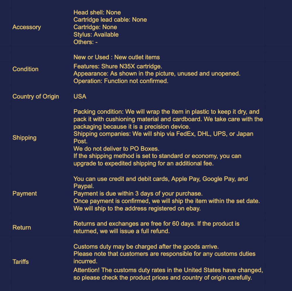 This stylus is a fantastic replacement for the M35X cartridge! Even though it's an outlet item, it performs like new with crisp, clear sound. The minor scuffs from storage don’t affect performance at all. Shipping was fast, and the seller provided great communication. Highly recommended for audiophiles on a budget!