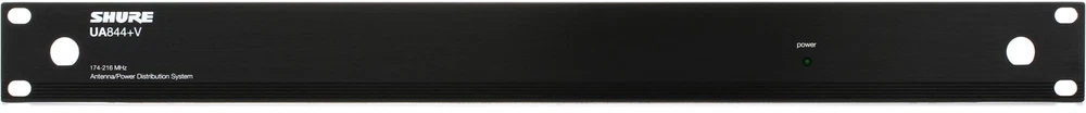Antenna Distribution System for QLX-D and ULX-D Sweetwater recommends the Shure UA844+V/LC antenna distribution system for expanding your QLX-D or ULX-D VHF wireless microphone systems. The UA844+V/LC works by splitting one pair of antennas out to multiple receivers; it also amplifies RF signals to offset insertion loss from splitting signal power to multiple outputs. One UA844+V/LC system can support up to five wireless receivers; you can use a maximum of five UA844+V/LC systems in a 2-tiered configuration.Shure UA844+V Features: 5-way RF signal output Compatibility: VHF QLX-D and ULX-D receivers Front-mount antenna hardware Includes rackmount hardware 4 DC power feeds — 15V, 2.5A maximum Antenna-bias DC outputs — 12V, 300mA maximum 1 UA844+ Antenna/Power Distribution System 1 PS45 power supply 2 Bulkhead adapters 1 rackmount hardware kit Sweetwater is an Authorized Shure Dealer Genuine Open Box Item Sweetwater's 2-year warranty Shure UA844+V/LC Five-Way Active Antenna Splitter and Power Distribution System Antenna Distribution System for Shure QLX-D and ULX-D VHF Wireless Microphone Systems - 174-216MHz Antenna Distribution System for QLX-D and ULX-D Sweetwater recommends the Shure UA844+V/LC antenna distribution system for expanding your QLX-D or ULX-D VHF wireless microphone systems. The UA844+V/LC works by splitting one pair of antennas out to multiple receivers; it also amplifies RF signals to offset insertion loss from splitting signal power to multiple outputs. One UA844+V/LC system can support up to five wireless receivers; you can use a maximum of five UA844+V/LC systems in a 2-tiered configuration. Shure UA844+V Features: 5-way RF signal output Compatibility: VHF QLX-D and ULX-D receivers Front-mount antenna hardware Includes rackmount hardware 4 DC power feeds — 15V, 2.5A maximum Antenna-bias DC outputs — 12V, 300mA maximum 1 UA844+ Antenna/Power Distribution System 1 PS45 power supply 2 Bulkhead adapters 1 rackmount hardware kit Specification Detail Type Acitve Antenna Splitter & Power Distribution System Compatibility Shure QLX-D, ULX-D Connectivity 2 x BNC (antenna in), 8 x BNC (RF out), 2 x BNC (cascade), 4 x BNC (power out) Dimensions 1.77" x 19.01" x 6.77" RETURN INFORMATION We want you to be completely happy with your purchase from Sweetwater. If you are not satisfied with your product, you may return it for a refund of the purchase price within 30 days. If your purchase was eligible for Free Shipping, the shipping cost will be deducted from your credit or refund. Returns must be in the complete and original packaging with all accessories and complete documentation (Owner's Manual, warranty card, quick start guides, etc.), show no signs of wear or use, and include a Return Authorization number or be subject to a restocking fee.