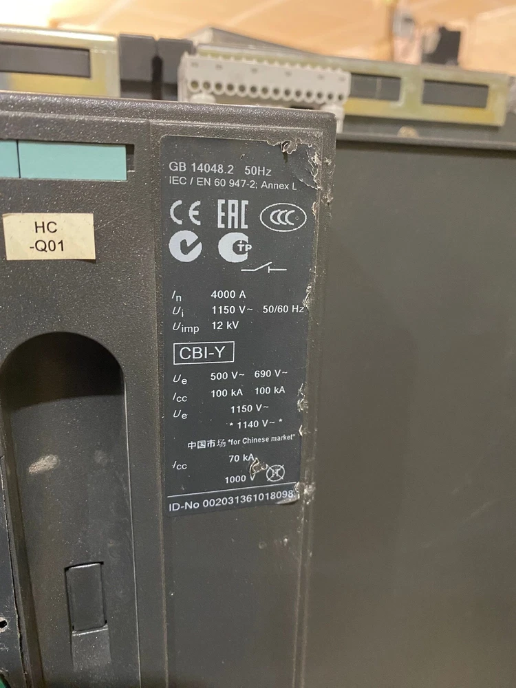 Siemens WLL3F340 Circuit Breaker 4000A 3P 600V 3PH WL Series 4000 Amp 3 Pole 3WL1340-5AA62-5AA4-Z WL III 4000 C Condition Notes: Cosmetic wear Item pictured will be exact item you receive unless multiple quantities listed. Please review all pictures carefully. Please ask any questions prior to purchase.