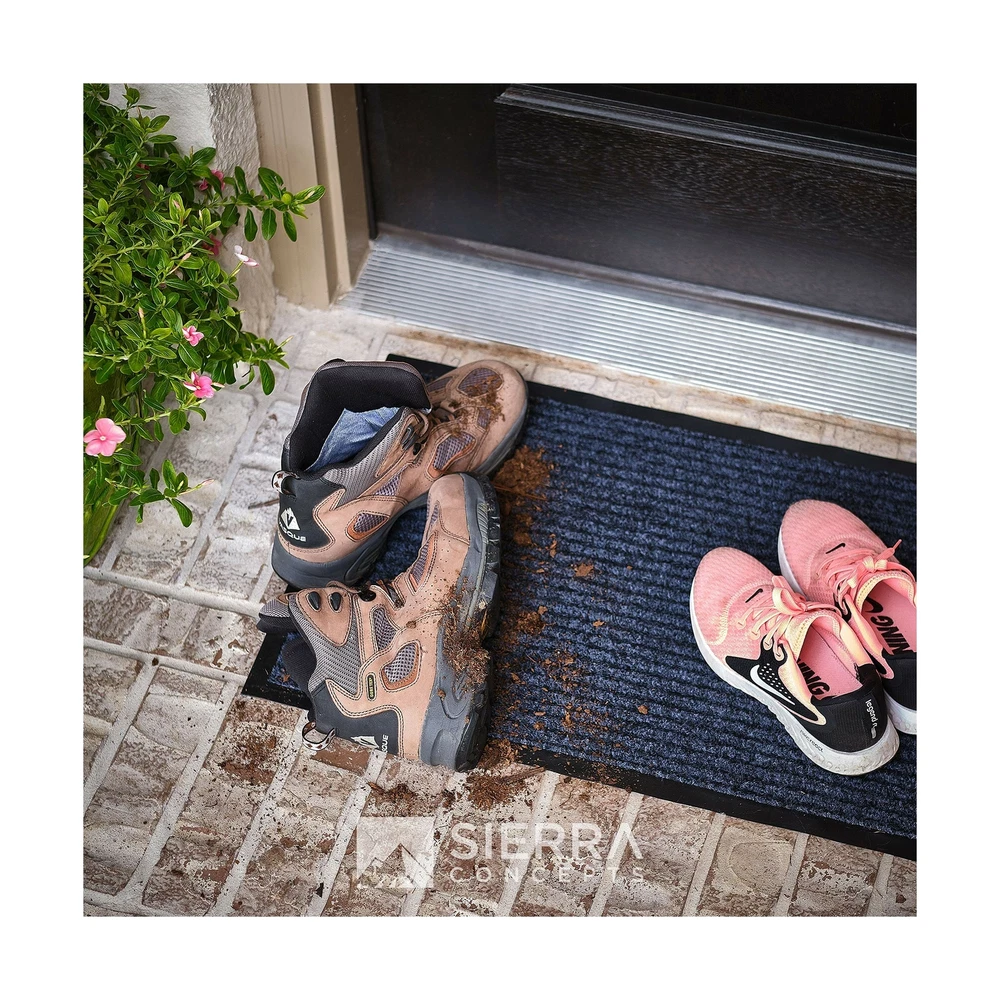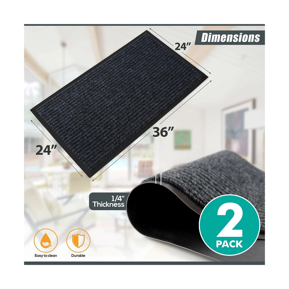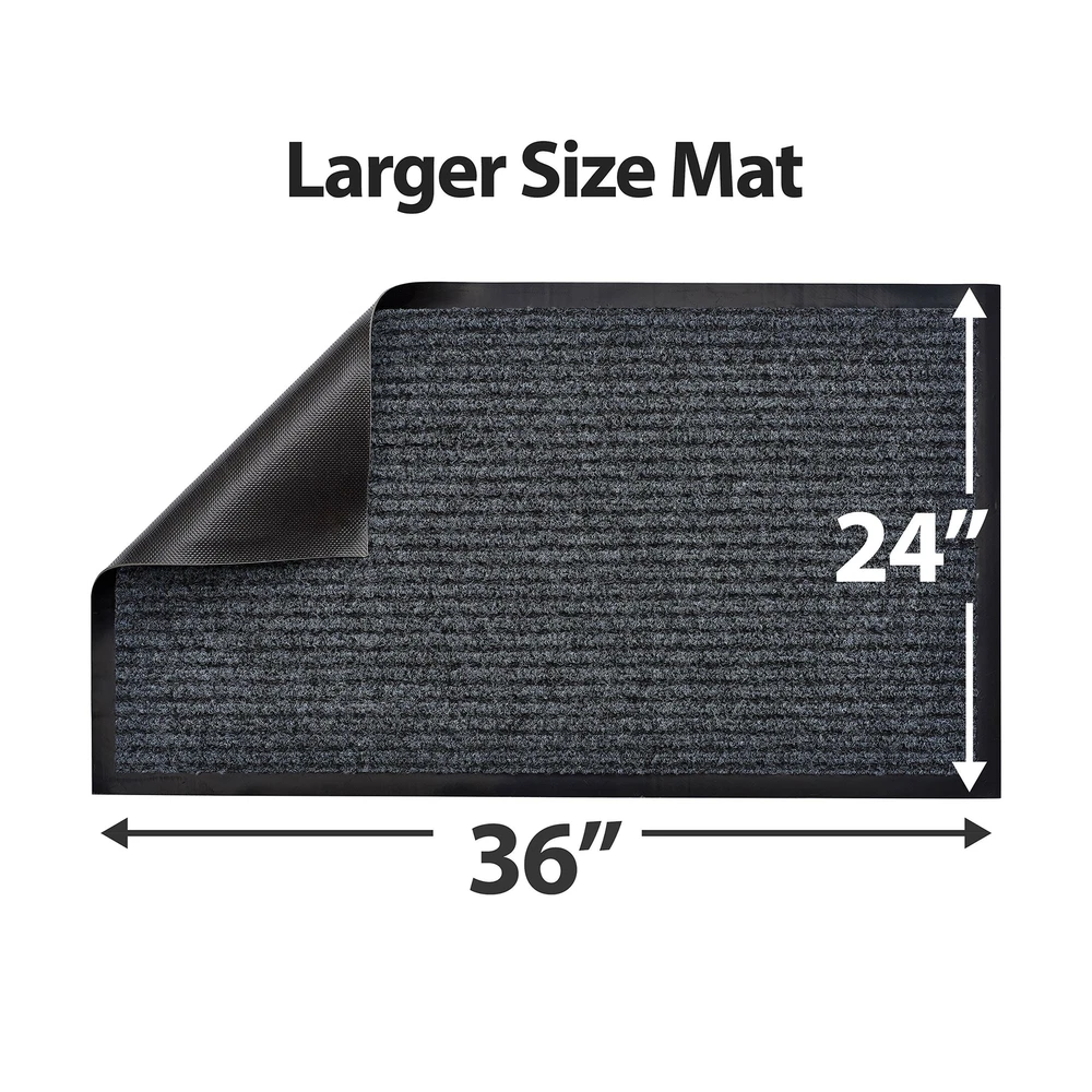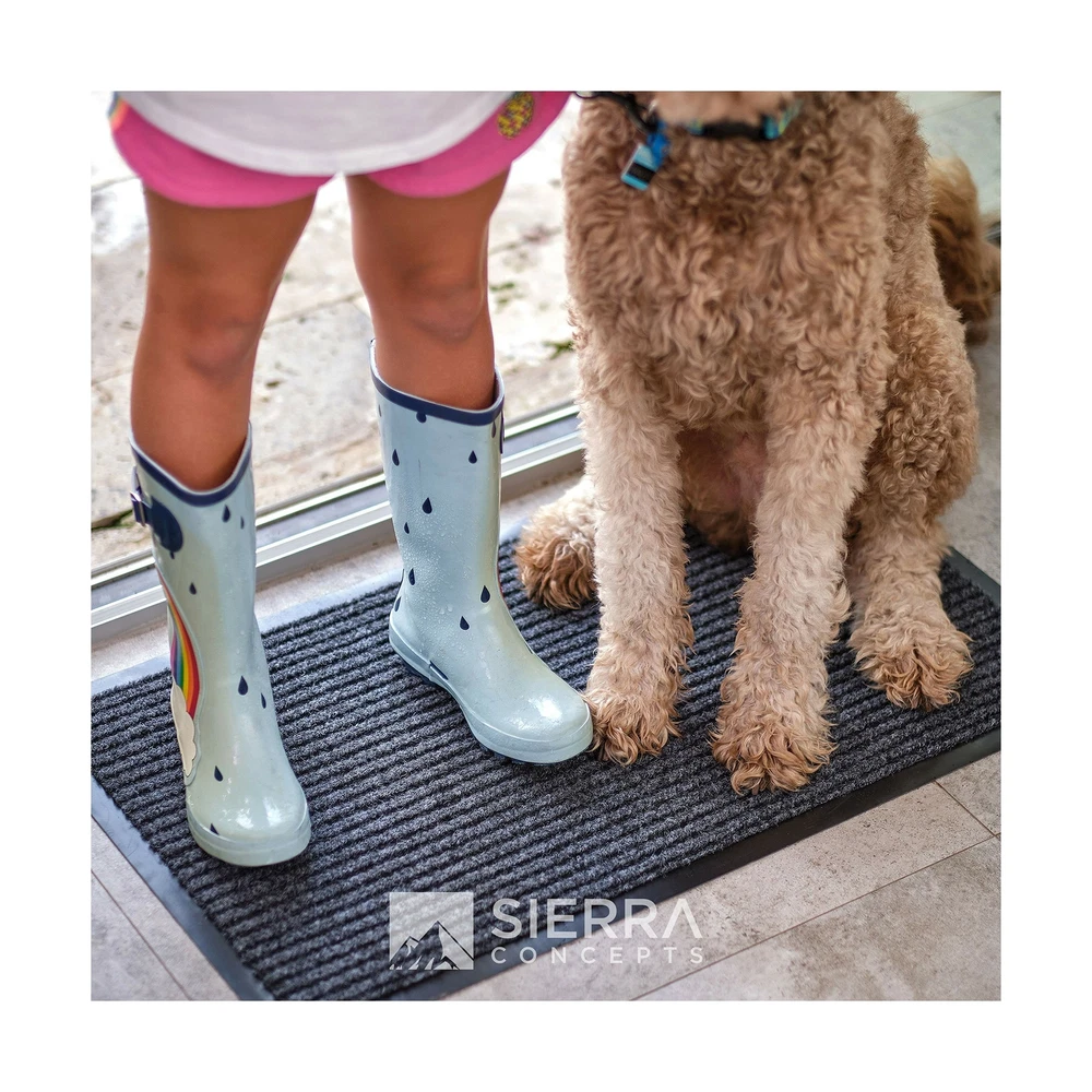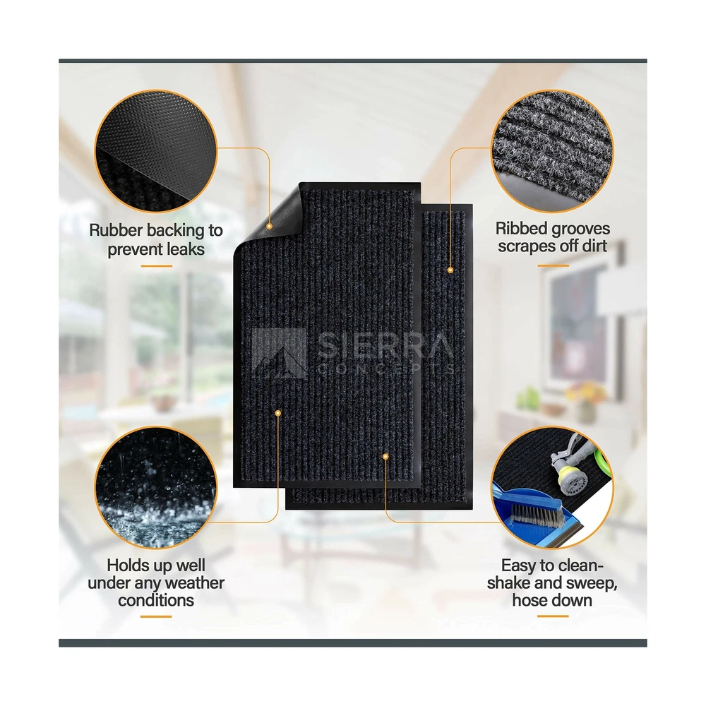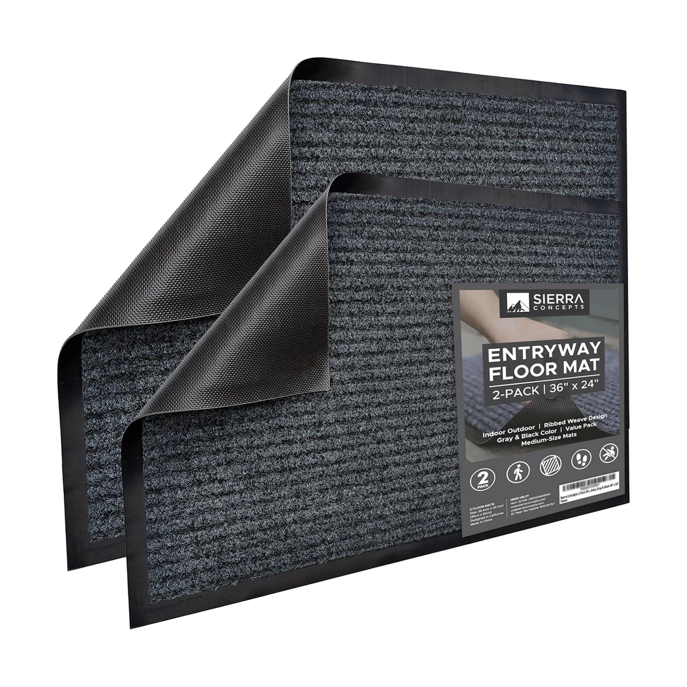 Sierra Concepts 2-Pack Striped Door Floor Mat - Indoor Outdoor Rug 36" x 24" Large Entryway Welcome Mats with Rubber Backing for Shoe Scraper, Ideal for Inside Outside High Traffic Area, Gray & Black Includes 2 Larger Indoor Outdoor Floor Mats: Enjoy two amazing heavy duty high quality ribbed polyester door mats (Larger 36" x 24") that will be perfect welcome for the everyday home. Amazing value 2-Pack. Durable, Safe & Easy Maintenance: Cleaning and maintaining your indoor outdoor rug mat has never been so easy. Shake the mat, sweep the rug, or hose off and dry the entryway mat - it's that simple. Environmentally Friendly Doormats: The large mats are made of high quality polyester and recycled rubber and includes non slip rubber backing which prevents moisture leaks while keeping the mat in place. Ideal Mat Use: Indoor, outdoor, kitchen, side, front door, entryway, hall, patio, garage, laundry, bathroom, or any location that sees a good amount of foot traffic. Perfect for keeping your floors clean as the ribbed material helps scrape dirt and debris from shoes. Satisfaction Guaranteed: Backed by our 10-Year No Questions Asked Policy. Count on a USA brand to extend unparalleled customer service! Larger size 36"x24" door mat! Why settle for one door mat when you can have two? Enjoy 2 Sierra Concepts indoor outdoor entryway door mat rugs. A beautiful color of steel grey/black combination brings out the true home decor. The rugged high quality ribbed polyester design allows you to scrape dirt and debris from your shoes. Let the welcome mat clean off your shoes. Perfect for inside or outside entryways near door, closets, laundry, garage, patio or other high traffic indoor outdoor areas. Read more The heavy duty rubber non slip backing prevents moisture leaking and keeps mat in place. Solid solution for wet, rainy, snowy days. A larger size of 36 inches wide by 24 inches tall allows decent coverage for the entryway. A beautiful color of steel grey/black combination brings out the true home decor. Enter your home or any hall door entryway with confidence. Versatile, durable and easy maintenance. Just shake off debris, sweep with a broom, or hose it off with water to allow maximum cleaning. Read more On Dec 27, 2024 at 04:24:54 PST, seller added the following information: