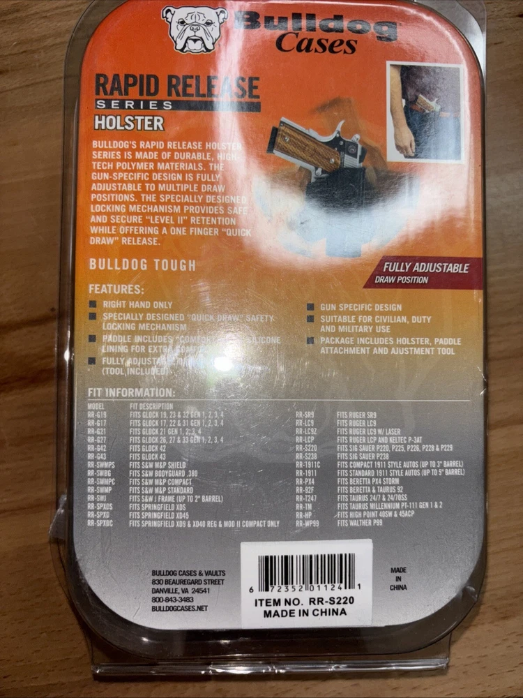 Bulldog Rapid Release Holster / Sig Sauer P220 Series. Shipped with USPS Ground Advantage.