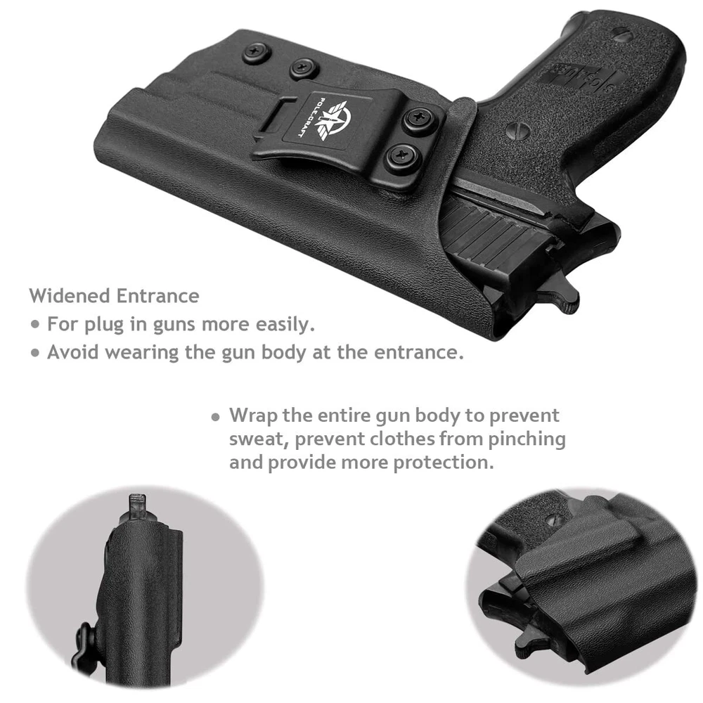 The obvious choice for concealed carry KYDEX Holster It's a holster hidden in a belt and clothes that protects you from anywhere, without causing anxiety. The KYDEX holster is very thin and has no sharp edges or corners for comfort and convenience. Can be effectively hidden under the clothes. High quality and excellent performance Our Sig Sauer P226 Full Size 4.4'' holster has a Posi-Click Audible Retention Lock system, and the pistol has a crisp “click” sound when it is inserted, so you know that your gun is firmly seated. Since reaction time is critical to survival, we use a set screw to adjust the tightness to determine the force required for extraction. Nylon + fiberglass belt clips are solid and reliable, you can adjust the angle of 0 to 15 degrees according to your own habits, so that you can achieve the fastest speed. High matching, no sloshing, no jitter, no wear. Inserting and unplugging is easy. Perfectly protect your love gun. The Sig Sauer P226 Full Size 4.4'' Holster is hand-made from the sturdy 0.8" KYDEX. It is not only waterproof, sweat-resistant, but also has high strength, high toughness, impact resistance, abrasion resistance and aging resistance. It can be used under various conditions. So you can always rely on it to save your life. We offer a lifetime warranty and if our Sig Sauer P226 Full Size 4.4'' Barrel IWB holster does not perform as promised under normal use, please return it for replacement or a full refund. Keep your Sig Sauer P226 Full Size 4.4'' Barrel at your fingertips while keeping it out of someone else's. Add the Kydex IWB Sig Sauer P226 Holster to your cart today.