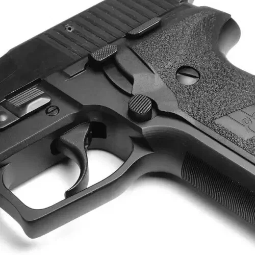 Matrix Precision Arms Extended Magazine Catch and Special Decocking Lever for Sig Sauer P Series Black The Matrix Precision Arms Extended Magazine Catch is 2mm (.08″) longer than the factory mag catch. The standard decocker interferes with the longer mag catch and requires an altered decocking lever or a Legion or P224 decocking lever to function properly. Includes : 1 Extended Magazine Catch in Nickel Models : P226, P228, P229 Manufacturer : Matrix Precision Arms Also available in Nickel in another auction