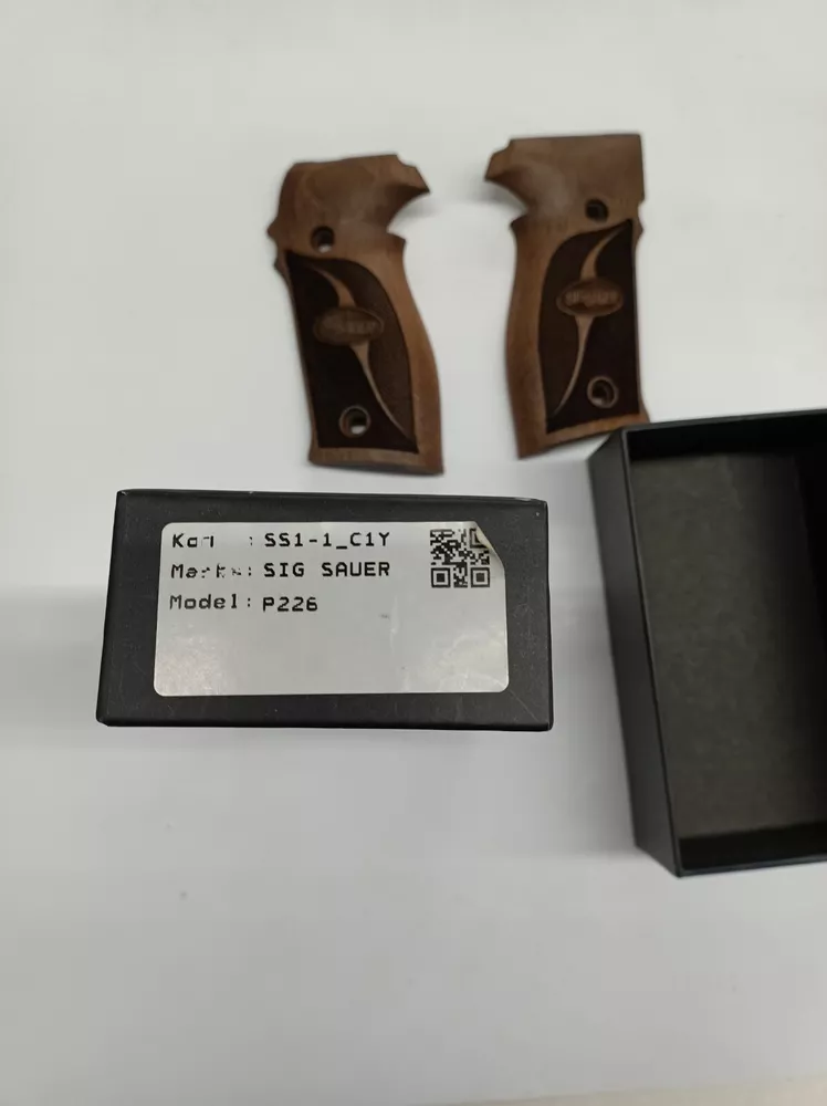 The Sig Sauer P226 Grips are replacement grip panels designed specifically for Sig Sauer handguns. Made of wood in a brown color, these grips are tailored for the 9mm Luger caliber. Ideal for shooters looking to enhance the look and feel of their firearm, these grips bear the Sig Sauer brand name for quality assurance.