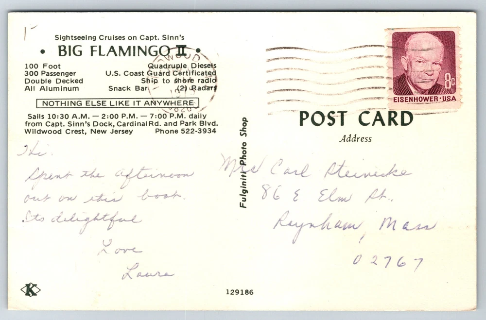 Sightseeing Cruise Big Flamingo II Wildwood Crest NJ C1975 Postcard AA23