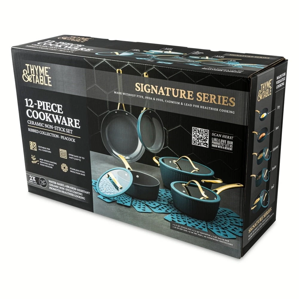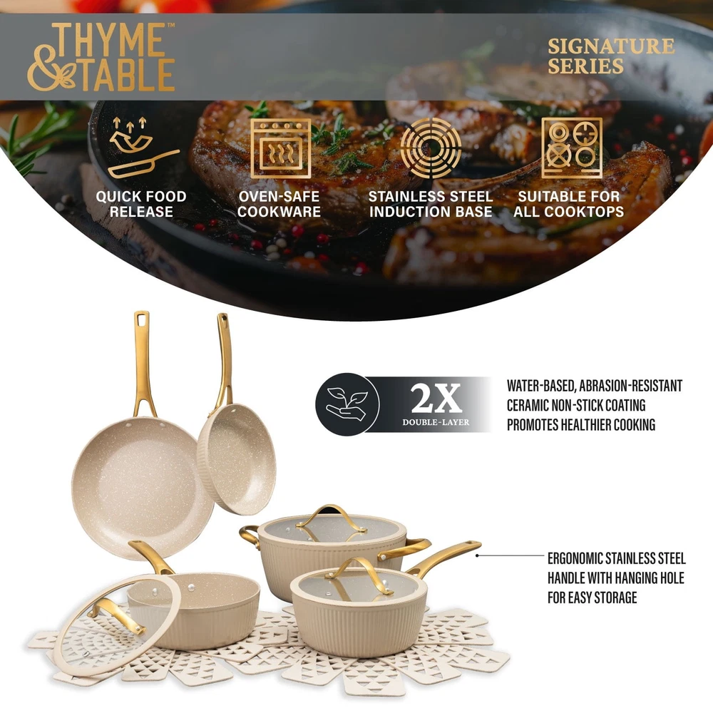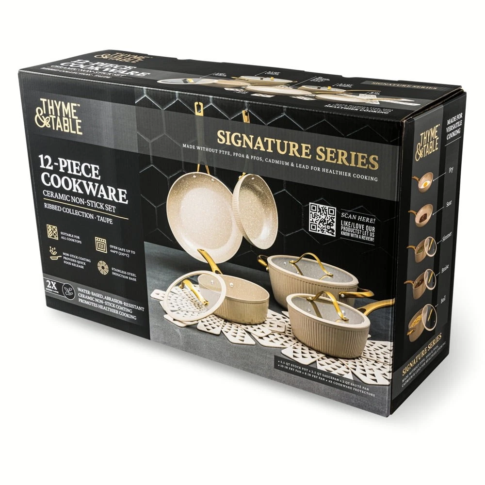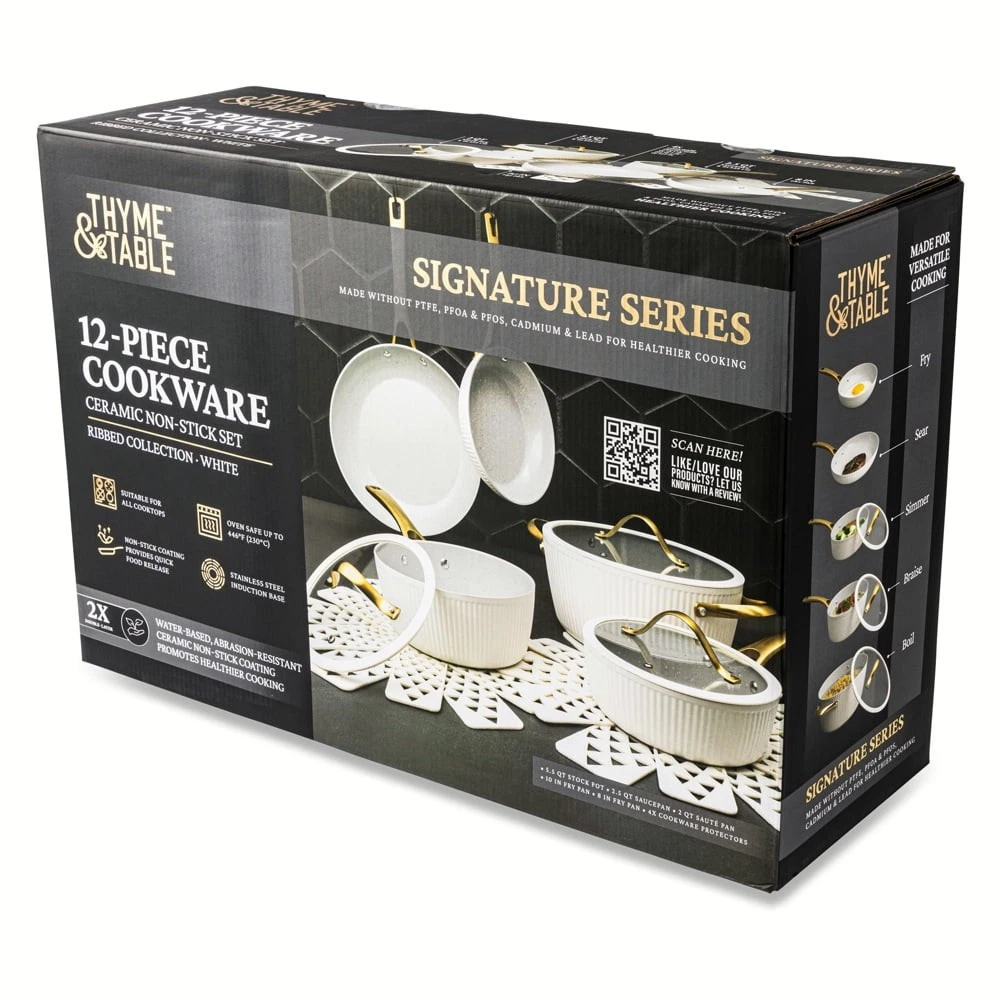 Store Categories Store Categories Other Signature 12-Piece Cookware Set Healthier Cooking Non-Stick - White & Gold Product Description Ultimate Engineering: Each piece is crafted to perfection using heavy gauged aluminum, ensuring exceptional results with every dish. Because of its stainless-steel induction base our cookware is engineered for all cooktops, including gas, electric or induction, and oven safe up to 446° Fahrenheit. Healthier Cooking and Non-Stick: The ultimate feature is its water-based, abrasion-resistant ceramic non-stick coating, promoting healthier cooking and effortless cleanup. Ultimate Handling: Designed for ease and precision, our cookware features ergonomic riveted handles that provide superior grip and balance, ensuring safe and effortless maneuvering in the kitchen. Revolutionize your Kitchen: Capable of handling everything from frying and searing to simmering, braising, and boiling, this comprehensive set is designed to revolutionize your cooking experience. Offering versatility and durability in one stylish package, it elevates your kitchen setup. Enhance your culinary creativity with confidence using the 12-Piece Ceramic Non-Stick Ribbed Cookware Set. Cleaning Care: Dishwasher Safe Payment Policy Shipping Policy Returns Policy Feedback Policy Contact Us Payment Policy All major credit cards are gladly accepted including credit, debit and gift cards, Apple Pay, Google Pay, PayPal, and PayPal Credit. Your order will be processed pending receipt of cleared payment through your payment of choice. Sales tax may be charged de pending on your lo cation. Shipping Policy After payment is received, all items are shipped within 48-72 hours after work (except Saturdays, Sundays, and holidays). During the store's vacation, there are dedicated warehouse staff to arrange shipment, and there will be no delay in shipment. Please rest a ssured to purchase. All products are free of shipping. Returns Policy We accept return within 30 days since you received your package. Please contact us for return or refund. I f you have any questions, please feel free to contact us and we will reply to you within 24 hours. Feedback Policy We greatly appreciate your POSITIVE feedback. Please do NOT leave negative feedback without asking for help. Our aim is to provide Top Level Customer Service. If you have any questions, please feel free to contact us and we will reply to you as soon as we see the message. Thank you very much for your understanding. Contact Us You can contact us by leaving us an txt message on Ebay. We will respond to each txt message within 24 hours every working days(within 36 hours on weekend). We will provide you the best servi ce, sincerely appreciated you would contact us to get a better solutions . Thank you so much to consider time difference, maybe we couldn't not reply to you in a timel manne. Copyright © 2023 Dianxiaomi