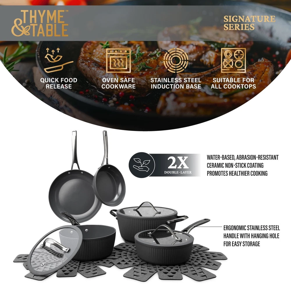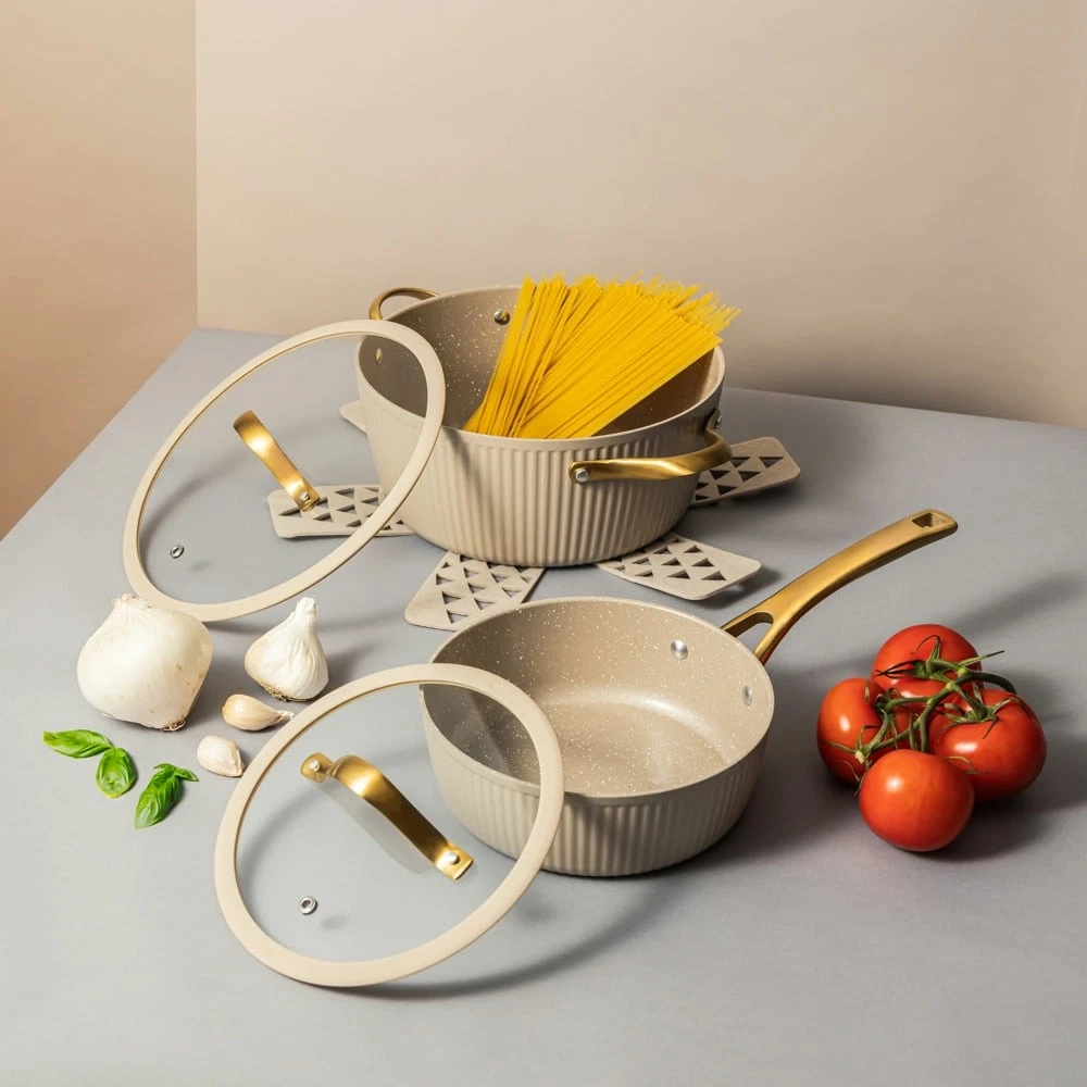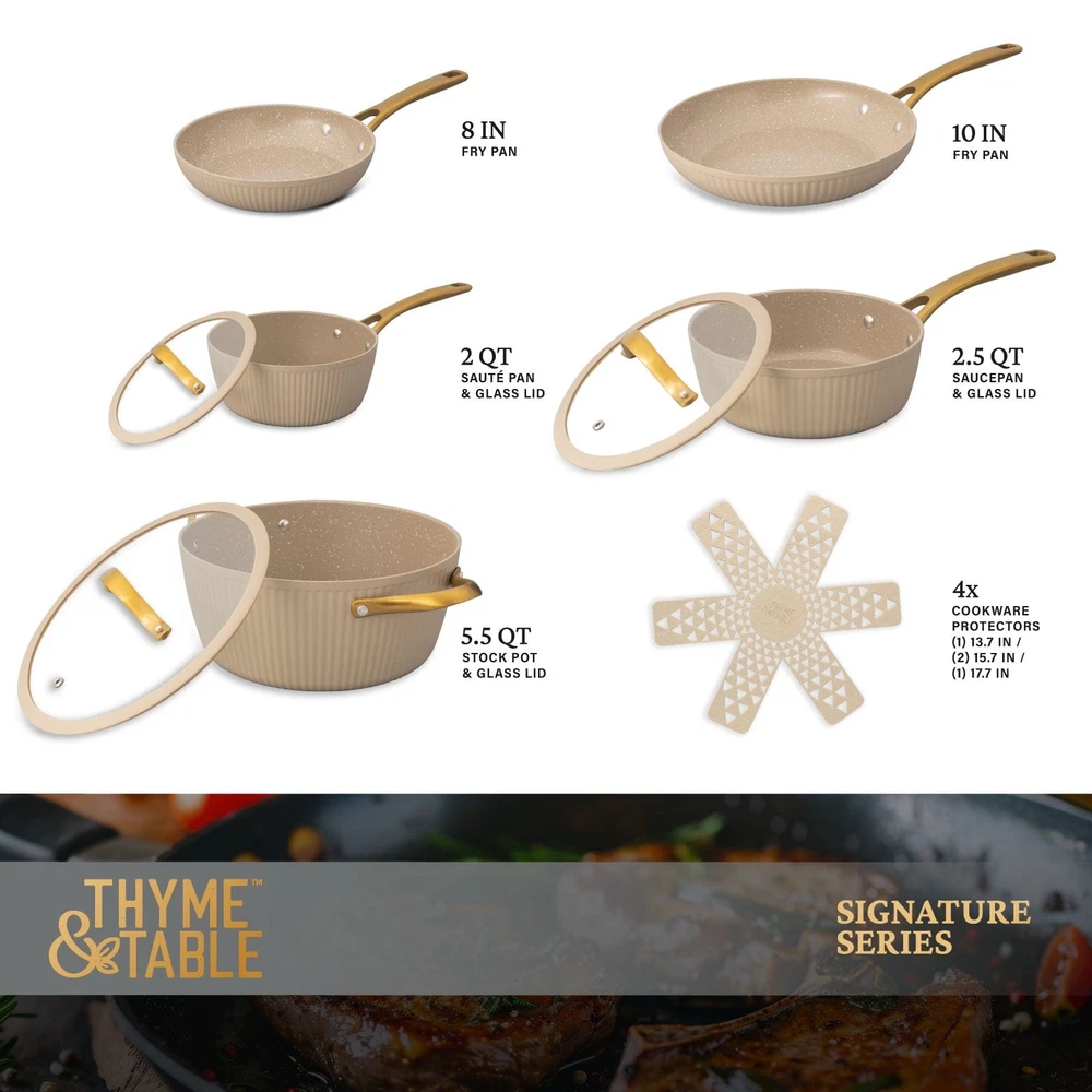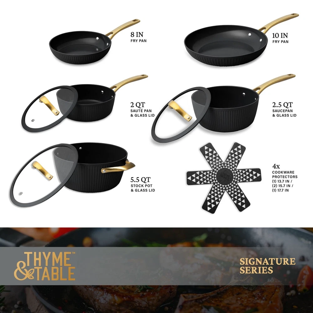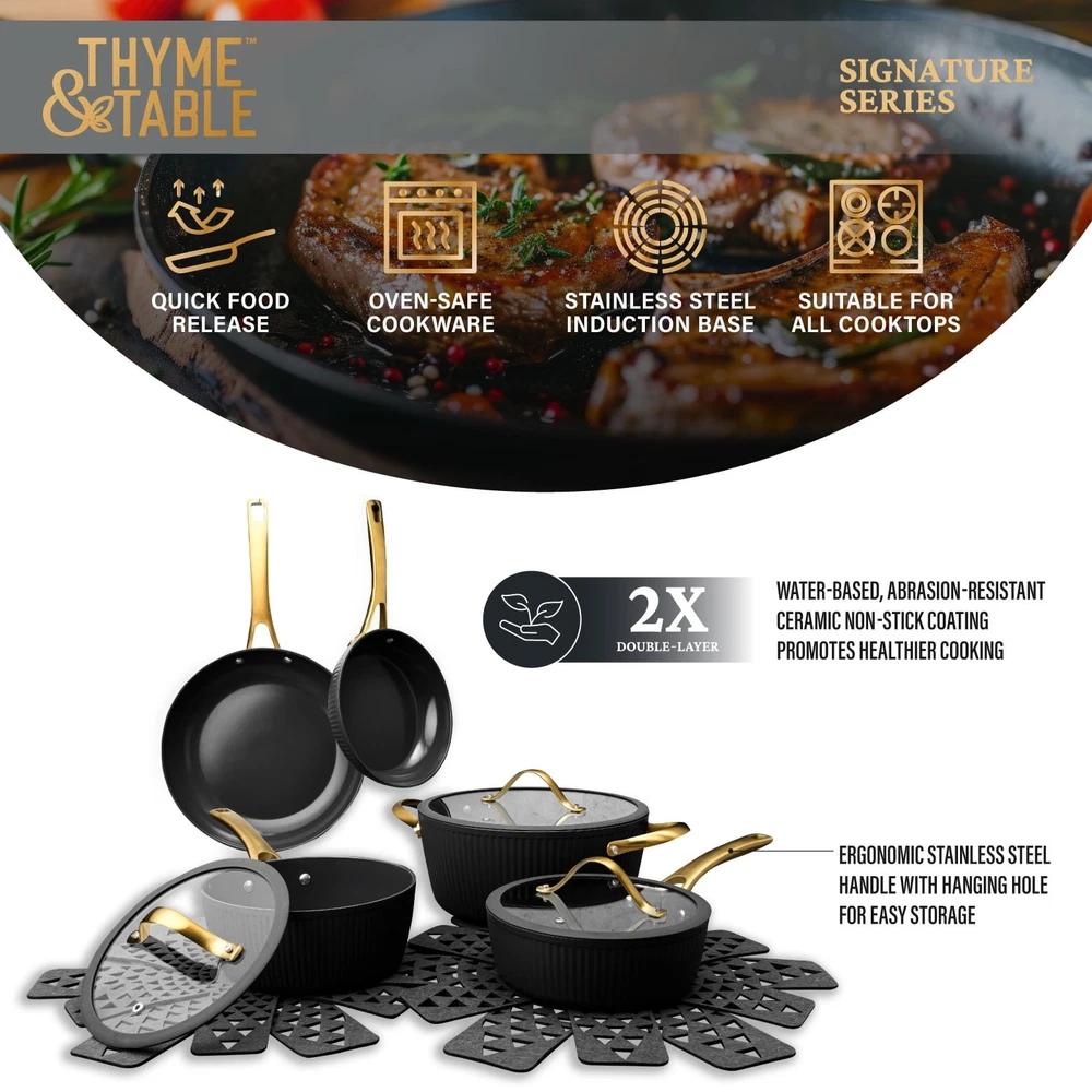 Store Categories Store Categories Other Signature 12-Piece Cookware Set Healthier Cooking Non-Stick - White & Gold Product Description Ultimate Engineering: Each piece is crafted to perfection using heavy gauged aluminum, ensuring exceptional results with every dish. Because of its stainless-steel induction base our cookware is engineered for all cooktops, including gas, electric or induction, and oven safe up to 446° Fahrenheit. Healthier Cooking and Non-Stick: The ultimate feature is its water-based, abrasion-resistant ceramic non-stick coating, promoting healthier cooking and effortless cleanup. Ultimate Handling: Designed for ease and precision, our cookware features ergonomic riveted handles that provide superior grip and balance, ensuring safe and effortless maneuvering in the kitchen. Revolutionize your Kitchen: Capable of handling everything from frying and searing to simmering, braising, and boiling, this comprehensive set is designed to revolutionize your cooking experience. Offering versatility and durability in one stylish package, it elevates your kitchen setup. Enhance your culinary creativity with confidence using the 12-Piece Ceramic Non-Stick Ribbed Cookware Set. Cleaning Care: Dishwasher Safe Payment Policy Shipping Policy Returns Policy Feedback Policy Contact Us Payment Policy All major credit cards are gladly accepted including credit, debit and gift cards, Apple Pay, Google Pay, PayPal, and PayPal Credit. Your order will be processed pending receipt of cleared payment through your payment of choice. Sales tax may be charged de pending on your lo cation. Shipping Policy After payment is received, all items are shipped within 48-72 hours after work (except Saturdays, Sundays, and holidays). During the store's vacation, there are dedicated warehouse staff to arrange shipment, and there will be no delay in shipment. Please rest a ssured to purchase. All products are free of shipping. Returns Policy We accept return within 30 days since you received your package. Please contact us for return or refund. I f you have any questions, please feel free to contact us and we will reply to you within 24 hours. Feedback Policy We greatly appreciate your POSITIVE feedback. Please do NOT leave negative feedback without asking for help. Our aim is to provide Top Level Customer Service. If you have any questions, please feel free to contact us and we will reply to you as soon as we see the message. Thank you very much for your understanding. Contact Us You can contact us by leaving us an txt message on Ebay. We will respond to each txt message within 24 hours every working days(within 36 hours on weekend). We will provide you the best servi ce, sincerely appreciated you would contact us to get a better solutions . Thank you so much to consider time difference, maybe we couldn't not reply to you in a timel manne. Copyright © 2023 Dianxiaomi