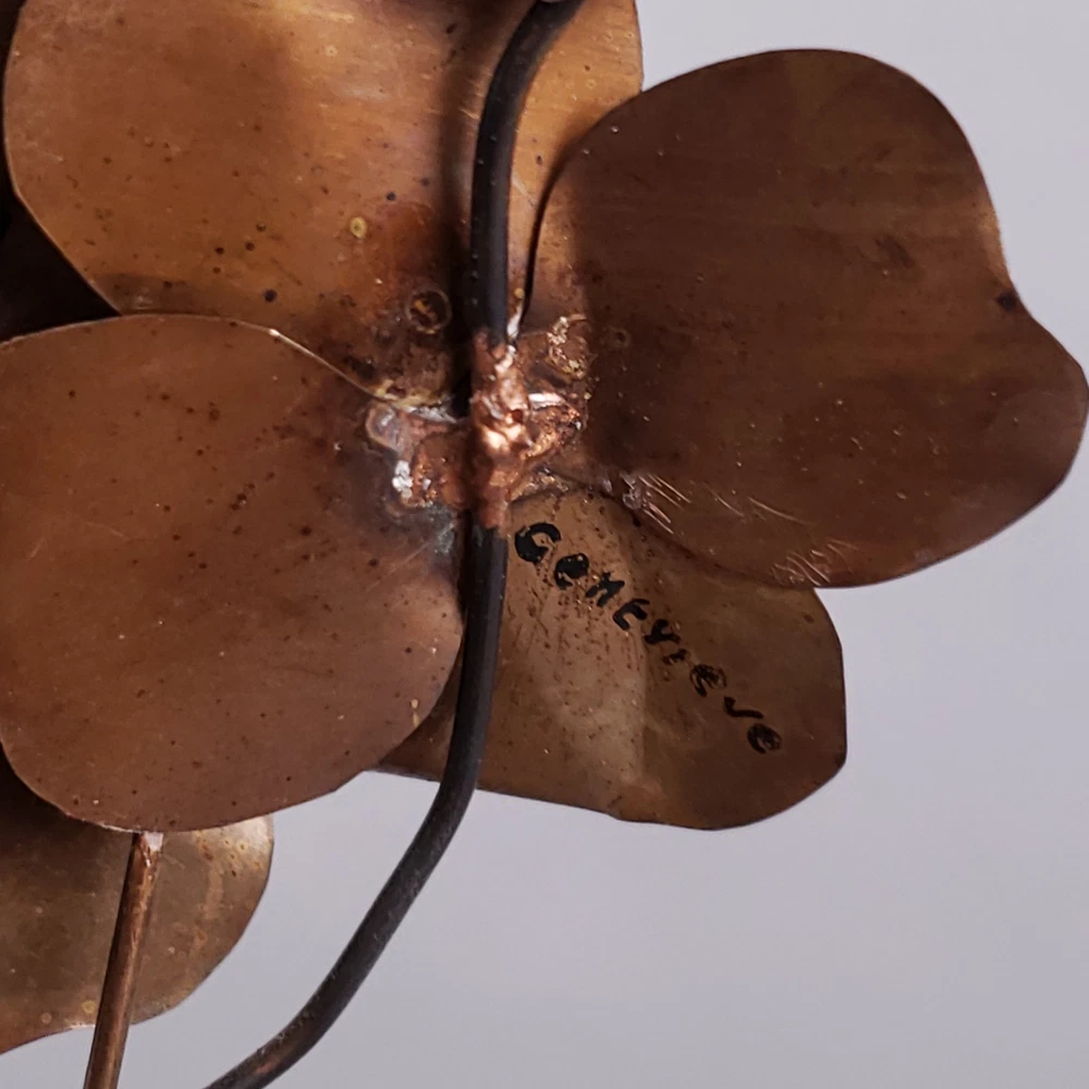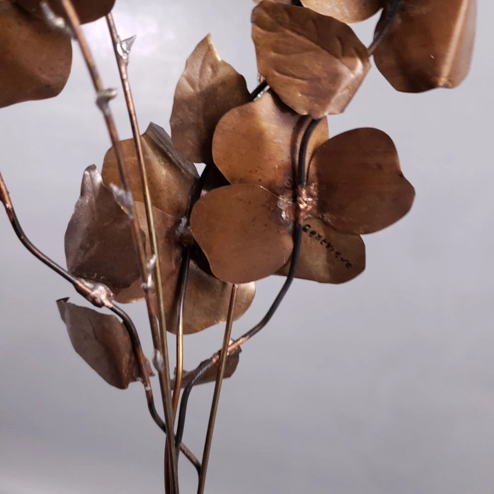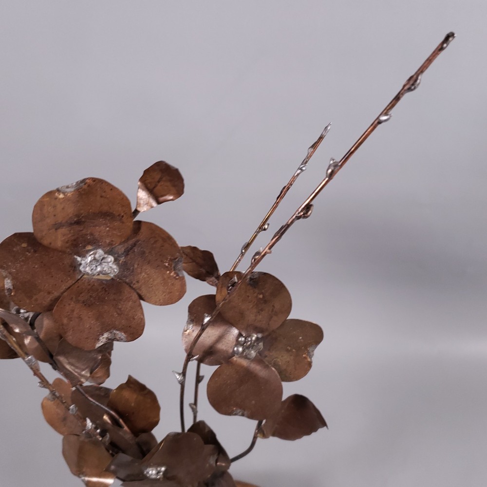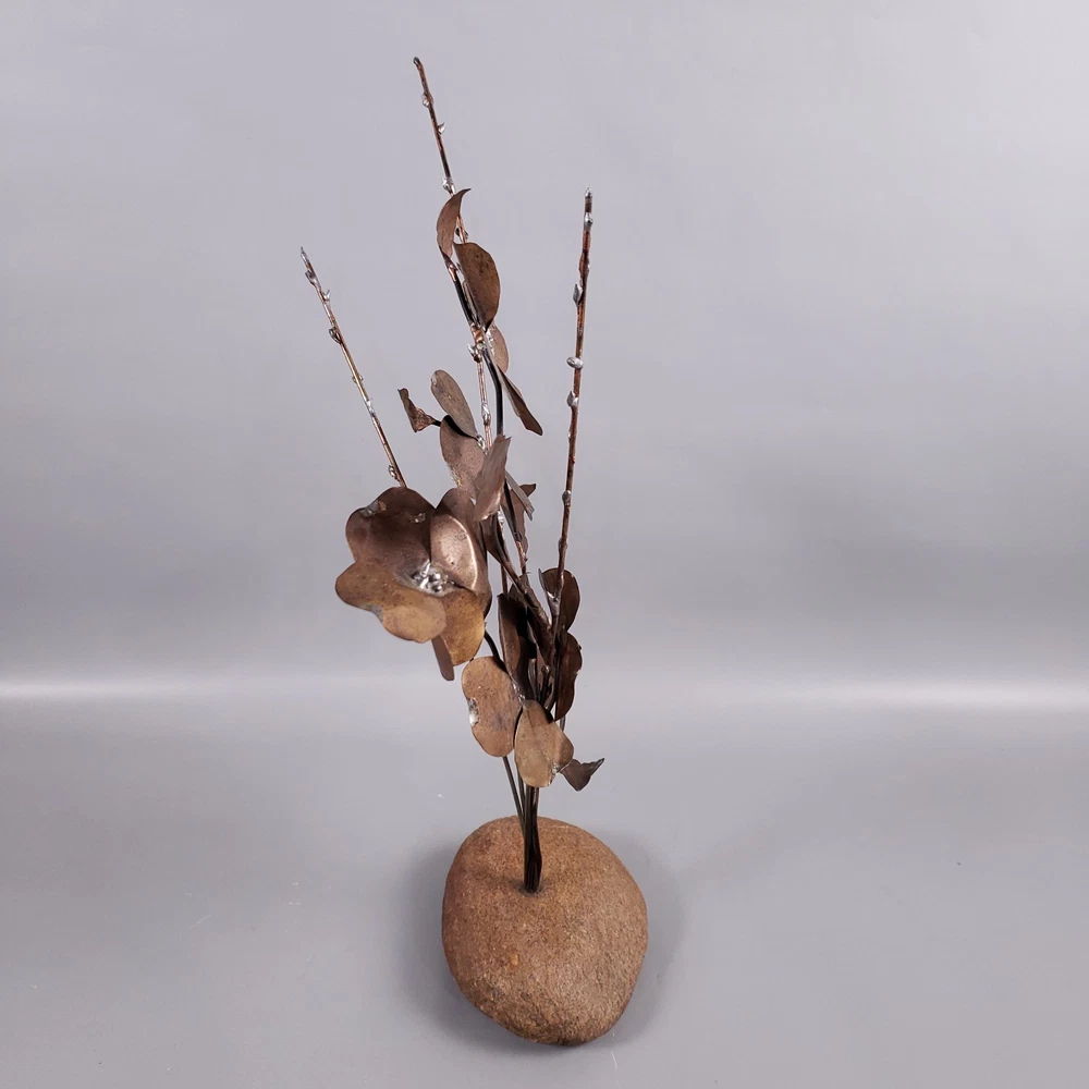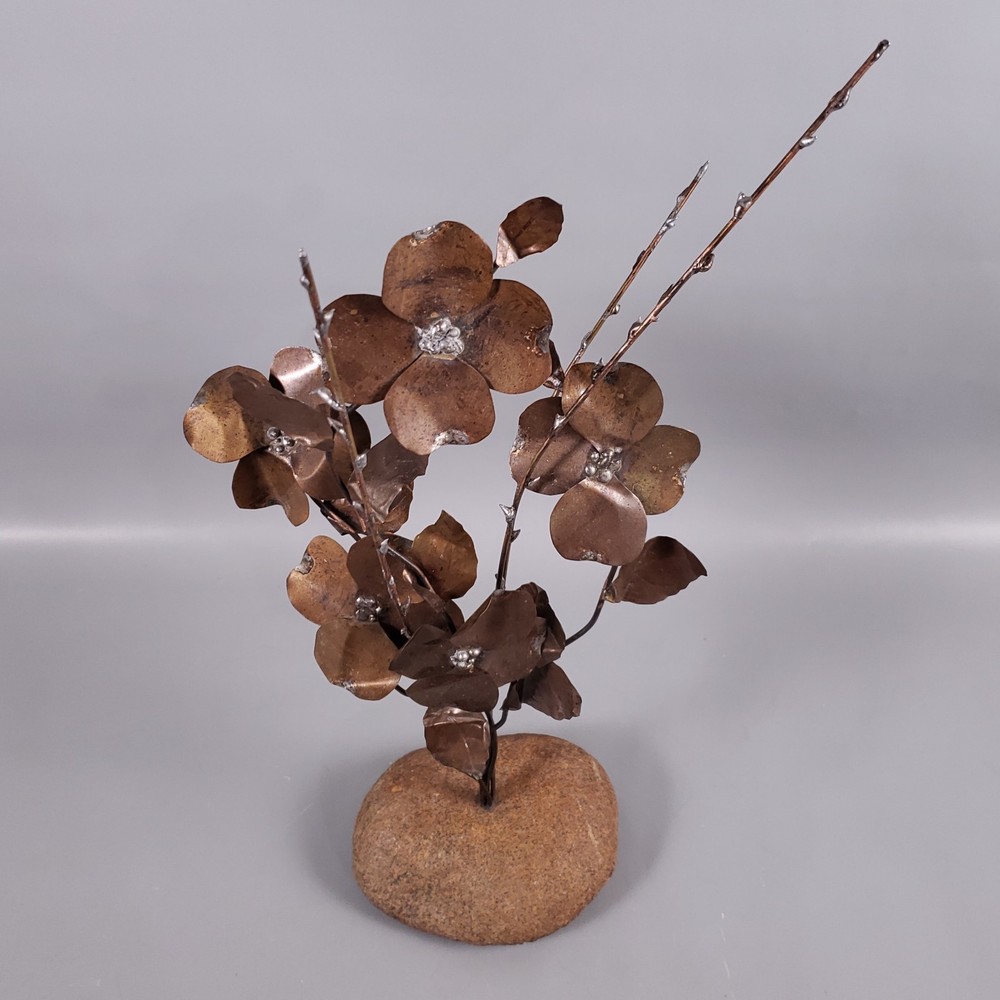 SIGNED Vintage Brutalist Brass Metal Rustic FLORAL SCULPTURE • Hand sculpted, brass, floral sculpture on a round, smooth rock base • Rustic, MCM, brutalist style • Brown felt on base • Black script on back of a flower petal: - "Genevieve" ** MEASUREMENTS ** • Weight: 12 oz ~~ Sculpture ~~ • 7½" x 3½" x 11½" ~~ Base ~~ • 3¾" x 3 x 1¾" ** CONDITION DETAILS ** • VERY GOOD, previously owned condition • Minor age-related wear • No chips, cracks, crazing, or other damage noted ** See photos for additional condition details ** PHOTOS ** • Photos provide a visual inspection of the item(s) prior to purchase & are considered a part of the item(s) description • Please VIEW ALL PHOTOS carefully prior to bidding, submitting an offer, or purchase • Our items sold are vintage or antique, previously owned & used • Normal use & age related wear is expected • We do our absolute best to depict the condition of the item(s) in both of the "Item Details" section, as well as in the photos • We are happy to provide additional photos & answer any questions if needed • Feel free to make an offer Thank you for taking the time to view our item!! - Pieces of the Past KC Who we are… A small, family run business located in the heart of the Midwest! We offer a variety of pre-owned vintage & antique items such as CERAMICS, PORCELAIN, ART GLASS, JEWELRY, and EPHEMERA acquired from local estate sales, auctions, thrift & antique stores. We want to provide you with the best service possible! If there is ANY issue with the item delivered, please contact us prior to filing a return or leaving feedback. We would greatly appreciate the opportunity to assist you & provide a resolution! ** SHIPPING ** • Items are carefully packaged & shipped within 1 business day of payment made - Items are normally shipped via USPS Ground Advantage, however UPS & Fed Ex options are also available. - We do NOT charge for the cost of shipping supplies, as this is OUR cost to do business • Shipping prices are quoted by eBay, through the USPS site - Calculated shipping is based upon your location & the package measurements - We obtain accurate measurements of each package to ensure prices are calculated correctly • PLEASE REVIEW & CONFIRM your billing information & shipping address prior to completing the purchase ** Buyer is responsible to provide accurate billing & shipping information • CANCELLATION of purchase after payment has been processed will be refunded minus any fees incurred by the seller that eBay will not refund ** INTERNATIONAL BUYERS ** Please Note the Following: • Import duties, taxes & charges are NOT included in the item price or shipping charges • These charges are NOT within the control of the seller & are the buyer's responsibility • Please check with YOUR country's customs office to determine what these additional costs will be prior to bidding/buying - These charges are normally collected by the delivering freight (shipping) company, or when you pick the item up • We DO NOT mark merchandise values below value or mark items as 'gifts', as US and International government regulations prohibit such behavior • Please allow at least 1-2 weeks, or more for delivery - Customs clearance times vary widely • Insurance is included as per eBay's International Shipping Policy