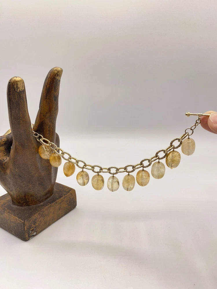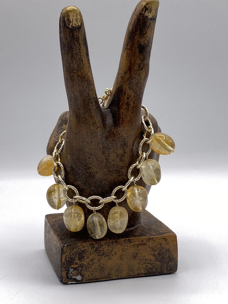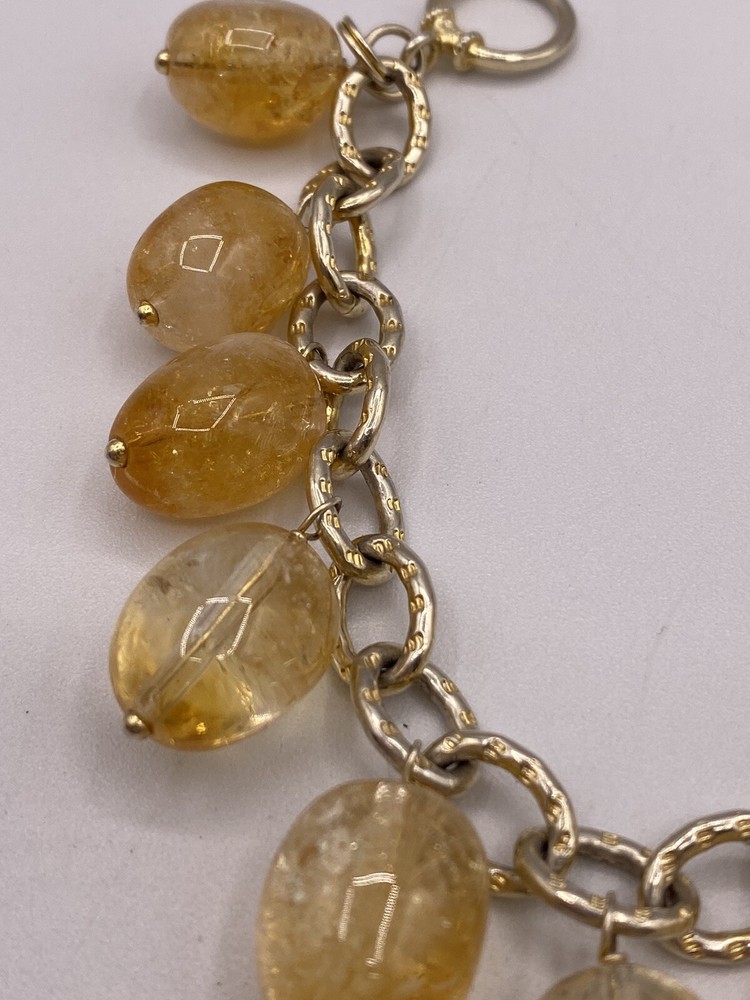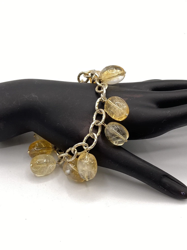 Color:Silver YellowOccasion:Anniversary, Birthday, Graduation, Mother's Day, Valentine's DayDiamond Color Grade:N/ANumber of Diamonds:0Charm Type:BeadSetting Style:N/AMain Stone Creation:UnknownSecondary Stone:N/AUPC:Does not applyOriginal/Reproduction:OriginalTotal Carat Weight:N/ABase Metal:SilverJewelry Department:FineDepartment:WomenMain Stone Shape:TeardropMaterial:GlassDiamond Clarity Grade:N/AMetal:Sterling SilverMain Stone Color:Yellowgtin13:Does not applyItem Length:7.2 inColored Diamond Intensity:N/AType:Cha Cha Dangle Beaded BraceletClosure:ToggleMain Stone Treatment:UnknownCountry of Origin:United StatesSigned:YesStyle:Beaded, beaded charm chain link sterlingSeller Warranty:NoMetal Purity:925Main Stone:GlassCut Grade:N/ACertification:N/ABrand:Lucus LamethCountry/Region of Manufacture:United StatesEra:Undated