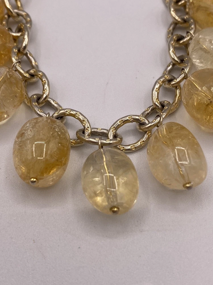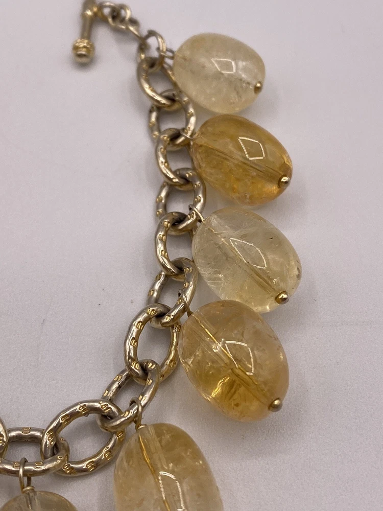 Signed LUC 925 Sterling Silver Bracelet with Citrine Yellow Glass Beads
