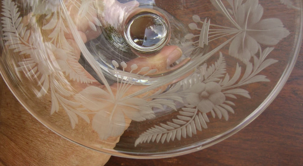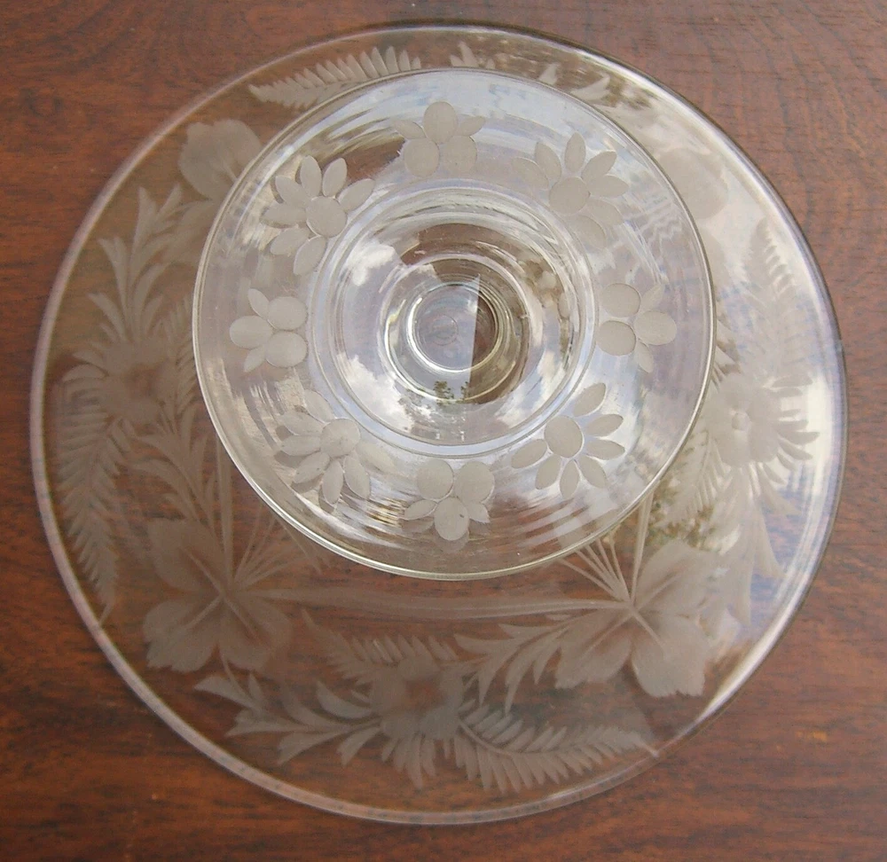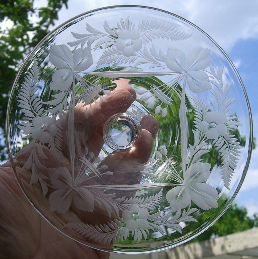 Signed Libbey Engraved Glass Footed Compote or Candy Dish Engraved both within bowl and on base with Floral, Drapery & Foliage design. Signed on underside. (hard to see in pics but it's there) Stands approximately 4" tall and measures 6 1/8" in diameter. Base diameter is 3 1/8". Excellent Estate condition. No defects found. See other items JUST THE FACTS, MA'AM NOTES I try hard to have all silver hand polished before shipping. Most will have been polished before the photos were taken. Sometimes I miss. I do not polish other metals. All books may have an erased or penciled price on an early page. SHIPPING DISCOUNTS Always happy to combine multiple purchases if physically and safely possible. SHIPPING --CONTINENTAL UNITED STATES eBay's shipping and fees policies have required the addition of a Shipping & Handling fee -- minimum $1.00. The S&H fees will include Tracking on all packages, subject to USPS rules. For all purchases $49.99 and over, all James Avery, and all breakables, the S&H fee will also include USPS or eBay Sponsored Insurance fees for the 'Estimated Closing Price'. Current Priority Mail rules give automatic, free insurance for some Priority Mail packages. If your package qualifies I will refund any S&H fees I charged for insurance. Because of "Estimated Closing Price" and the all too frequent 'wild hair' that is eBay -- eBay's shipping calculator and actual shipping and handling costs ofttimes vary. I send out invoices thru the eBay system ASAP (usually within 24 hours) and will correct shipping charges on those invoices. If you wish to avoid a potential slight overcharge, please, wait for my invoice. I cannot be responsible for uninsured items once they are delivered to the Post Office. Items will generally ship within one day, but at most, two working days of cleared payment (i.e. a payment received on Thursday may not ship until Monday). I will email if there is some reason for delay. I do send email confirmations of shipment. SHIPPING AND DETAILS -- OVERSEAS I do not ship anywhere in Africa. Assume that I will not ship to any country in political turmoil. You can see the list in the Shipping Details section. Buyers outside the USA must have: » at least 20 feedback ratings with 100% positive for a period that exceeds 3 months. PayPal required for overseas transactions. A minimum $2.00 handling fee is charged on overseas transactions to cover additional paperwork and packaging costs. This fee will be assessed only once in the case of multiple purchases. Overseas Priority and Express Mail have an inherent insurance based on weight and additional insurance can be purchased . This is also true for the larger Flat Rate boxes. First Class Mail International and Priority Mail Small Box Flat Rate do not include insurance and NO additional insurance can be purchased . Responsibility for an uninsured package will transfer to the buyer at the time I deliver the package to the Post Office. Customs declarations will be the price you paid. Items will ship within two working days of cleared payment (i.e. a payment received on Thursday may not ship until Monday). PAYMENT DETAILS An eBay system invoice will be sent within 24 hours of the close of sale. Payment is expected within 5 days. Write me if there is a problem. Cash or business checks are accepted for local pickup items. Texas residents must present a valid resale number or pay 8.25% sales tax. Again, just drop me an email and I'll adjust the invoice. RETURNS & GUARANTEES All items guaranteed to be as represented. However, I am an antique dealer who deals in old, used items. Unless I call it NEW it isn't, and will probably show signs of age or wear. I will describe anything that I consider to be more than normal wear. Returns must be preauthorized (send me an email or call), otherwise, no refunds will be made. Returns must be shipped within 3 days of receipt of authorization with item in original condition. Insurance required if the original package was insured. Tracking required on all returns. Any refund issued will be for full purchase price only . No shipping charges refunded. FEEDBACK I leave feedback after successful completion of the sale. I determine that the sale has been successfully completed when I receive your feedback. AND FINALLY Seller reserves the right to cancel sale and relist item if: 1) payment has not been received within 5 days of receipt of invoice, or 2) overseas buyer is from a country on my exclusion list or excluded above. Thanks for looking and good luck.