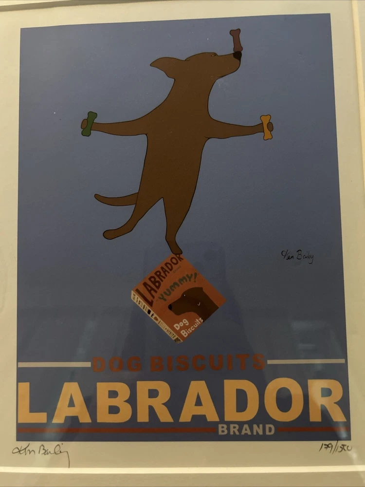This delightful print by Ken Bailey captures the playful spirit of a Labrador eagerly anticipating a tasty snack. The limited edition print, produced on high-quality matte paper, is a must-have for any dog lover or art collector. With a certificate of authenticity included, you can be sure that you are receiving an original piece by this renowned artist. Measuring 15 inches in height and 12 inches in width, this print is perfect for adding a touch of canine charm to any room.