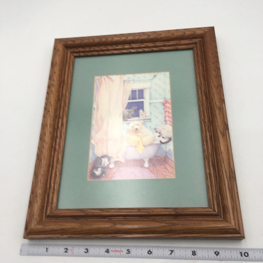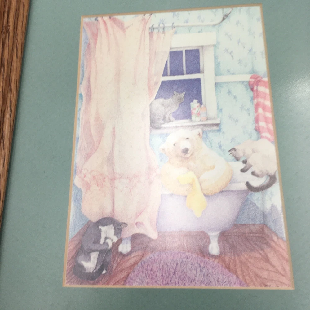 Signed Print 10 X12 Vintage B Stone Bear Bathtub Bath Cats Framed Polar