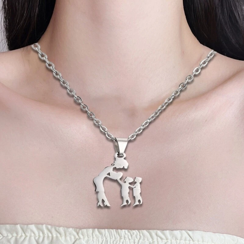 Features: This Mom Daughter Family Necklace is a perfect gift for Mother's Day, featuring a stylish stainless steel chain and a beautiful silver color pendant. Crafted with stainless steel materials, this necklace is sturdy and long lasting, ensuring that it will be weared for years to come. Designed for women of all ages, this necklace is a symbol of the special between mothers and daughters. It can be worn by both children and adults, making it a versatile piece of jewelry. Whether it's for everyday wear or a special occasion, this necklace adds a touch of elegances to any outfit. It can be worn with casual attire or dressed up for a formal event, making it suitable for various occasions. Show your love and appreciation to your mom or daughter with this meaningful Mom Daughter Family Necklace. It serves as a reminder of the between family members and makes for a great gift. Specifications: Material:Stainless Steel Chain Length:Approx.45+5cm/17.7+1.96inches Pendant Size:Approx.1.8x3.3cm/0.71x1.3inches Package Includes: 1Piece Mom Daughter Family Necklace note: Please allow 1-2cm errors due to manual measurement,Please make sure that you do not mind before you order. Due to the difference between different monitors, the picture may not reflect the actual color of the item.