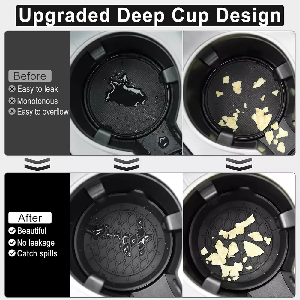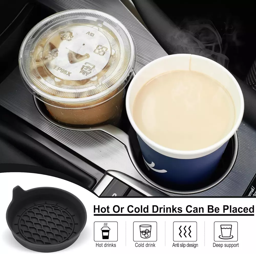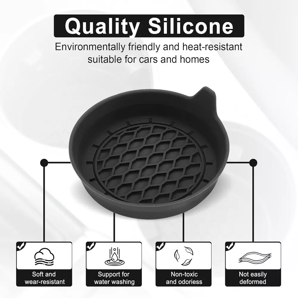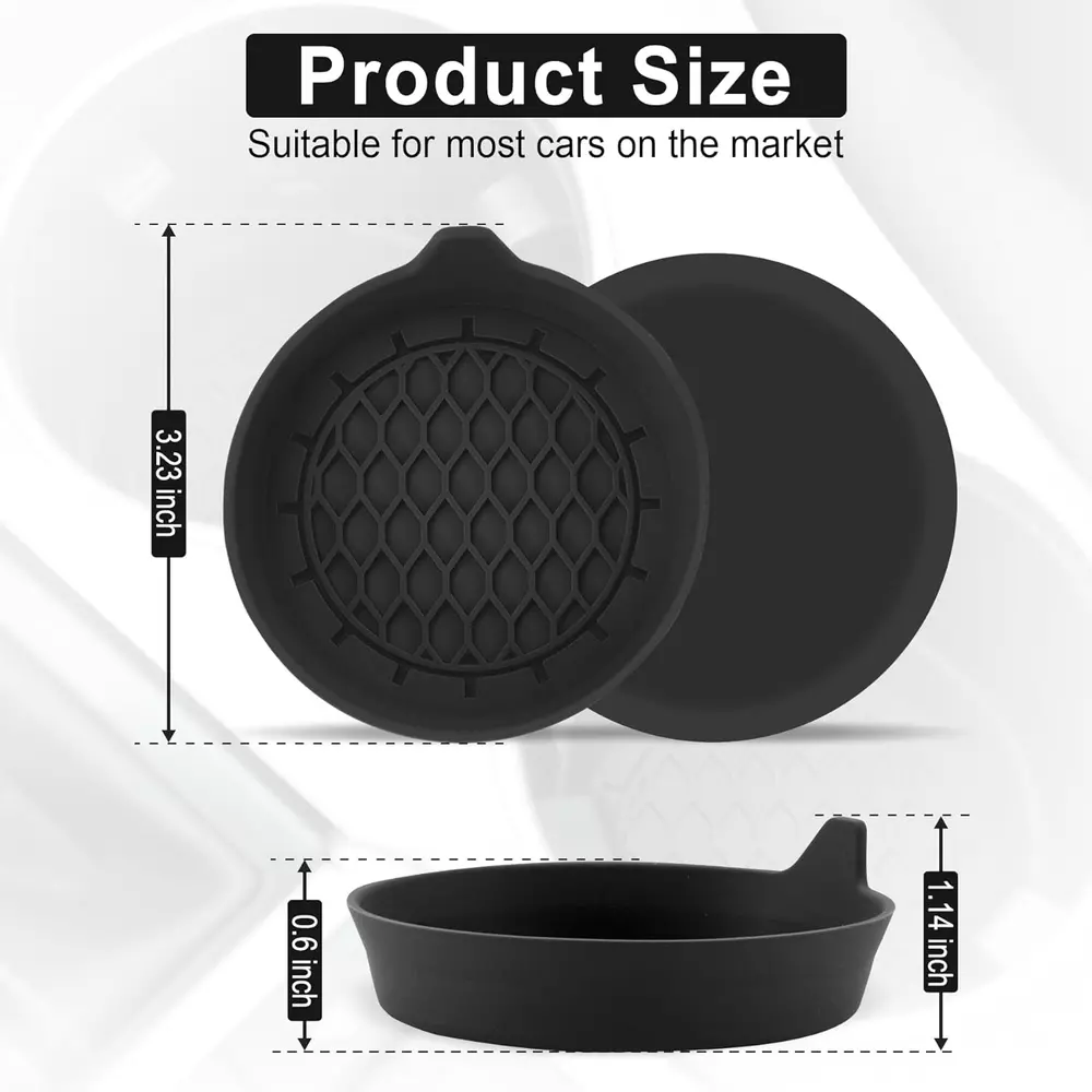 High Quality Material: The coaster is made of environmentally friendly silicone, safe, non-toxic and odorless. Soft with toughness, easily embedded in the cup holder. Very durable, wear-resistant, long service life. High temperature resistance, can withstand 100 ℃ high temperature water cups. Wide Compatibility: The coaster has a diameter of 3.15 inches and a height of 1.18 inches, which is widely used in most vehicles, such as SUV, sedan, MPV, etc., as long as the size fits your car cup holder. Protection Function: Our car cup holder coaster has a carry handle design and a stand-up ring edge on its edge to effectively prevent food crumbs, drinks and water from leaking out and preventing the car cup holder from getting dirty.Meanwhile,Thickened design effectively prevents the cup holder from being scratched by the cup when driving on bumpy roads and eliminates the annoying thumping sound, making your journey more enjoyable. Easy to Use and Clean: With embedded installation, you just need to put it flat on the car cupholder. It is also very quick to remove, there is a small bump on the coaster, pinch it and you can easily remove the coaster. It is very easy to clean, rinse with water or wipe with a wet towel (be careful not to clean with sharp tools). 100% Satisfaction: Our products have quality assurance, if you have questions or are not satisfied after receiving the product, don't worry, please contact us as soon as possible, we provide after-sales service. Product Description High quality coaster Waterproof and dust-proof, keep the cup slot clean and tidy The coaster can effectively insulate heat, and the coffee cup can prevent scalding the table It is made of high-quality silicone, which is soft, flexible, durable and not easy to deform Groove pattern design, beautiful appearance, various colors and styles, can add color to your car Rich usage scenarios In the car Suitable for most models, can reduce friction cup sliding At home Widely used in home kitchen and bedroom At office Don't worry about spilling it on the desk and damaging office supplies