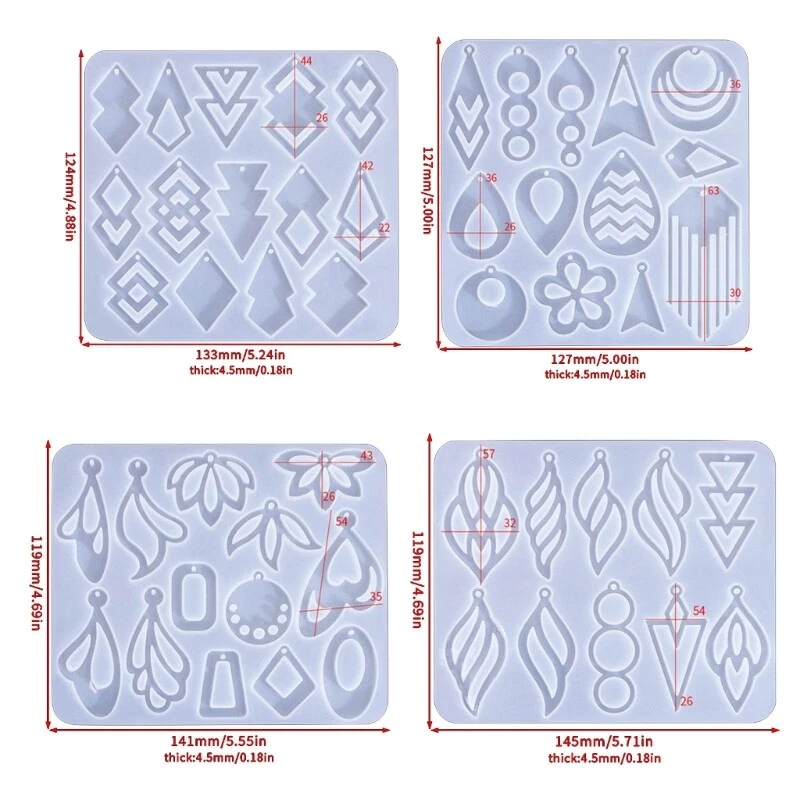 Features: Craft beautiful geometric earrings with our reusable silicone mold, featuring intricate hollow designs. Made from flexible silicone material, our mold allows for easy removal of finished item and can be used multiple times. Perfect for DIY enthusiasts, jewelry designers, and artists who enjoy handmade Suitable for various settings including home crafting, jewelry stores, art workshops, and DIY studios. Unleash your creativity and designs unique jewelry that showcases your personal style with our geometric silicone mold. Specifications: Material: Silicone Style:1/2/3/4 Size: As Pictures Show Package Includes: 1x Mold note: Please allow 1-2cm errors due to manual measurement. Please make sure you donot mind before order. Due to the differences between different monitors, the picture may not reflect the actual color from the item.