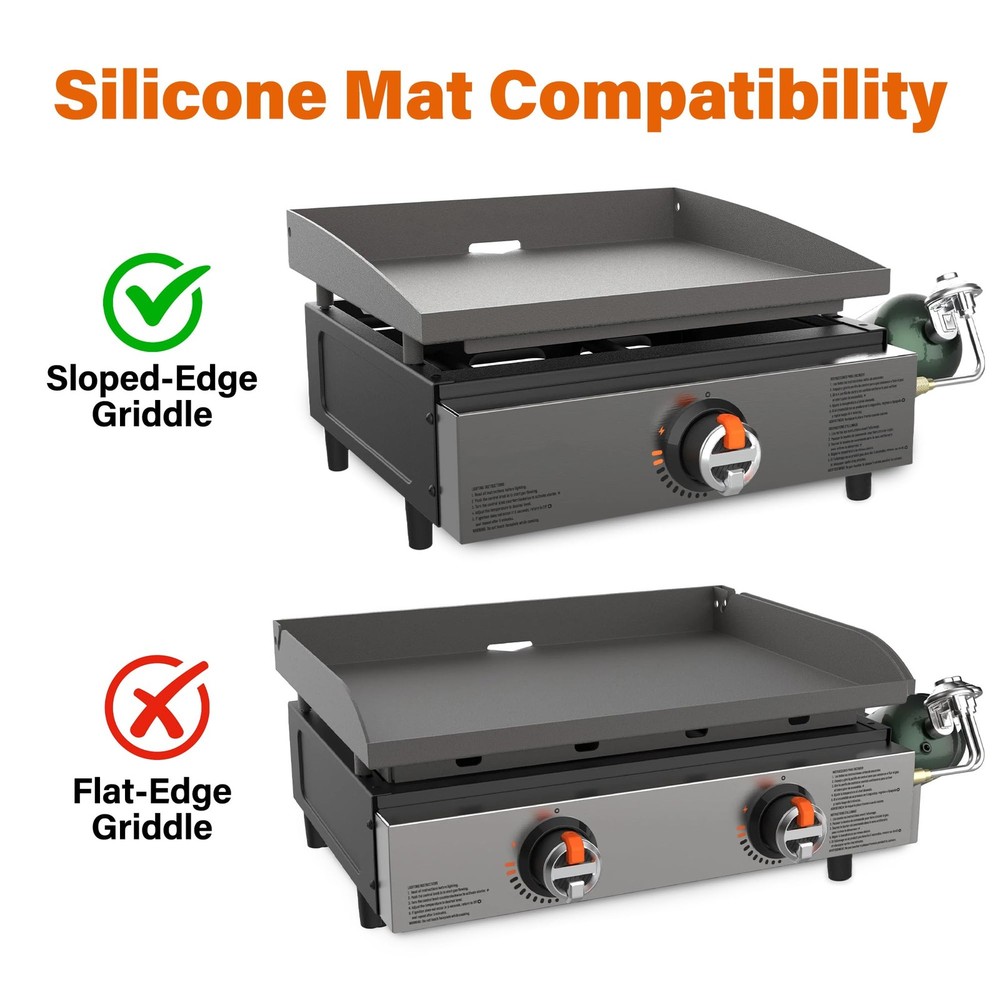 Full Coverage Silicone Griddle Cover for Blackstone Griddles. No one wants their Blackstone grill rusting or getting dirty. Use a silicone protective mat cover to protect the surface and be ready to grill and barbecue anytime. Protection for All Seasons Our silicone bbq grill cover for blackstone covers the cooking surface and wide walls. Effectively keeps out moisture, dirt, bugs and rodents. Thick & Durable Silicone Surface Protector Our outdoor silicone sheet is made of food-grade silicone, waterproof, heat resistant up to 400℉; food safe, foldable. Perfect Fit: Our 28 inch griddle mat measures 28.75 x 18 x 2 inches / 73x45.7x5.2cm, Fits 28” Blackstone griddles, All season protection; Note: Measure your griddle before purchasing – especially if it’s a non-Blackstone brand Full Coverage: Our protective silicone mat fully covers the griddle surface and side walls, protects the griddle surface from rust, dust, dirt, debris, critters, bugs and more Heavy Duty & Food-Grade Silicone Mat: Our griddle protector is made of 100% food-grade silicone, thick, durable; heat resistant up to 400℉, DO NOT try to cook food on the griddle cover mat Must Have Griddle Accessory: Silicone toppers for griddle keeps the surface ready to cook and extend your griddle’s service life; no cleaning and prepping the surface after a long storage period Easy to Clean: Our griddle top mat has a smooth surface and is easy to wash by hand or in the dishwasher; super easy to wipe clean; dries quickly