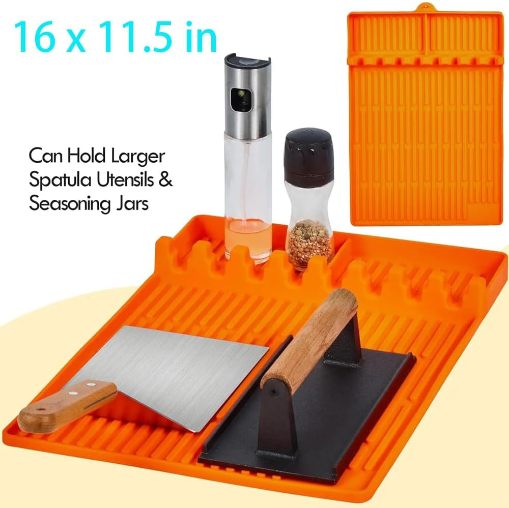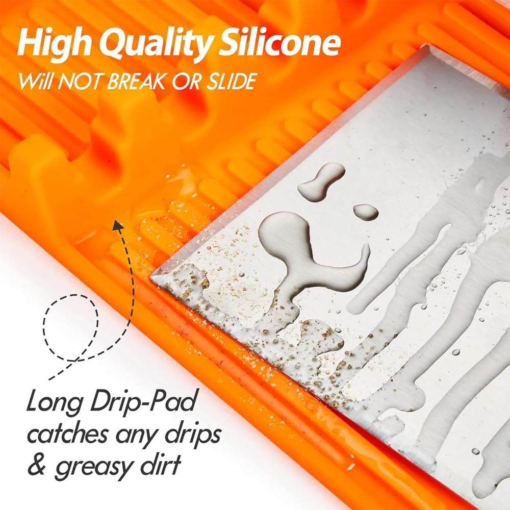This silicone griddle mat is a game-changer for my Blackstone grill! It keeps my spatulas and tools organized, the drip pad catches messes, and it's super easy to clean. The sturdy silicone holds everything in place, and it fits perfectly on the side shelf. A must-have for any grilling enthusiast!