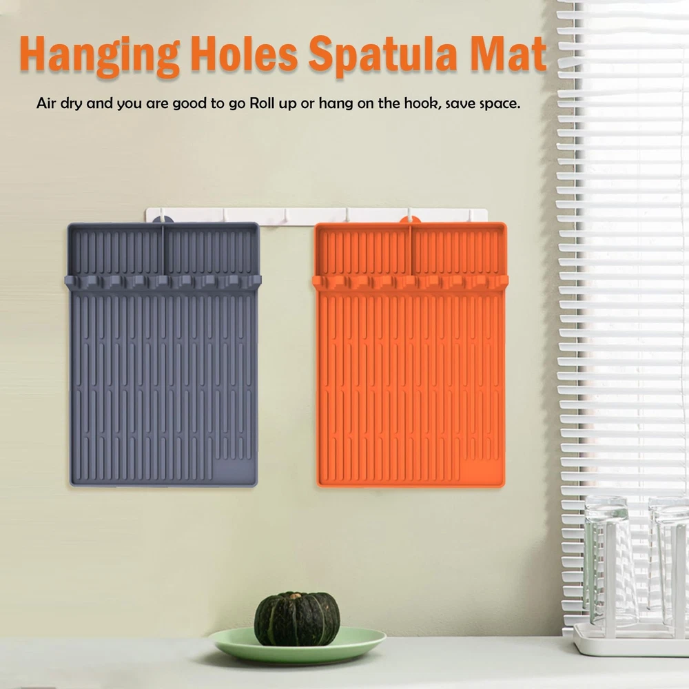 Grill Mat 【Versatile Griddle Accessories】Large Size silicone spatula mat size is 16*11.5*0.87 inch, can be used as a griddle mat, drying mat, insulation pot, counter mat, table mat, coaster, anti-scald pad, jar opener, pot mat, shovel & spoon rest, and other kitchen tools, also great mat tool for serving snacks, meals, and any food service. Silicone griddle tools mat not only does it hold various utensils, but it's also can organize grill BBQ caddy seasoning jars and more on your side shelf 【Food-Grade Silicone】 Grill Pad crafted from food-grade silicone, heat resistant from -60°F to 500°F, non-slip, non-toxic, BPA free, and resistant to oil/corrosion/microwave radiation, completely safe for use in the kitchen, cooking, and on countertops. The flexible & durable hot pad won't rust, crack, or chip, also suitable for grills, ovens, microwave ovens, or freezers 【Organized Griddle Tools Mat】: With silicone griddle tools mat barbeque tools, you can keep all your grilling essentials within arm's reach. Say goodbye to knocking over condiments or searching for utensils. This griddle mat keeps everything neatly organized and easily accessible whenever you need it. Whether you're having a BBQ dinner, picnic, camping trip, or tailgating event, silicone spatula mat griddle accessories holder is a must-have for all barbecue enthusiasts 【Non-Slip and Anti-Scratch】: Grill side shelf mat spatula mat with drip pad compatibility with Blackstone grills and other griddle with side shelves. The Irregular concave-convex design make it not slide easily, raised edge can prevent the overflow of water or soup to keep the table clean, and silicone spatula mat prevents scratching the surface of the grill and protects its coating from damage 【Easy of Cleaning】The silicone grill mat is effortlessly cleanable with soap and water, hand-washed or tossed in the dishwasher, saving you time and effort when mat comes to cleaning your griddle. In addition, the grill mat dries quickly, let it air dry and you are good to go roll up or hang on the hook, save space. Perfect griddle accessories tools for outdoor grill BBQ accessories, also can keep your kitchen stove cooking and countertop clean effortlessly with our silicone spatula mat