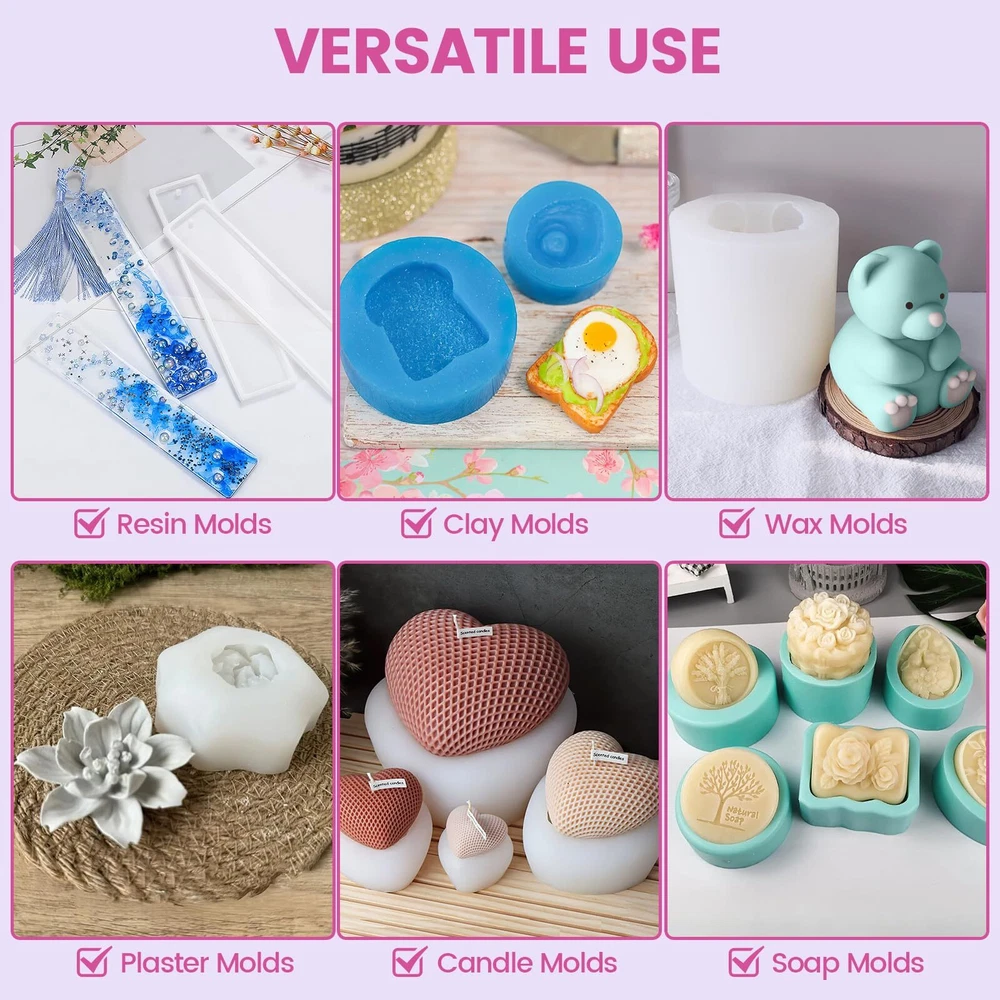 Silicone Mold Making Kit 34 OZ with Mold Housing, 15A Super Elastic Liquid Platinum Rubber Translucent Clear for Fidget Pad Resin Molds Silicone Molds 【ALL IN ONE KIT】silicone mold making kit includes part A and part B, mold housing, silicone mat, measure cups, stir sticks. Besides, we also equip with a bag of beads to creat a fidget pad 【EASY TO USE】 Pour the Part A and Part B together(the mix ratio is 1:1 by weight), then stir the silicone rubber for 5 minutes, make sure to stir the liquid siicone rubber mixture thoroughly for better results. The working time is 10-30 minutes at room temperature 【GREAT FOR BEGINNER】If you're new to the mold making, the mold making kit is a perfect choice for you to try! No special skills or other tools are needed. You could enjoy this fun. 15A hardness, so that the finished mold produced has good flexibility and elasticity, not easy to tear 【SAFE SILICONE MOLD MAKING KIT】The silicone mold kit is made of food grade silicone rubber, non-toxic and no odor, very flexible, soft and clear. You could also mix mold making silicone rubber with mica powder to create new colors 【WIDE APPLICATION】 It's very ideal for art craft use, DIY your own resin molds, wax molds, candle molds, soap molds, use to make silicone molds for resin casting, wax, candle,soap making, etc Our translucent liquid silicone for mold making are platinum-cured silicone, made by safe silicone material, non-toxic and no odor, very flexible, soft and clear. Shipping We offer FREE shipping on all orders! We ship within Three business days of payment, usually sooner. We use a selection of shipping services such as UPS, FedEx, USPS etc. We only ship to the lower 48 states, no APO/FPO addresses or PO Boxes allowed. Local pickups and combined shipping options are not provided at this time. Return You can return a product for up to 30 days from the date you purchased it. Any product you return must be in the same condition you received it and in the original packaging. Please keep the receipt. Payment We accept payment by any of the following methods: PayPal Please pay as soon as possible after winning an auction, as that will allow us to post your item to you sooner! Feedback Customer satisfaction is very important to us. If you have any problem with your order, please contact us and we will do our best to make you satisfied. Contact Us If you have any queries, please contact us via ebay. We usually respond within 24 hours on weekdays. Please visit our eBay store to check out other items for sale! Thank you for shopping at our store.