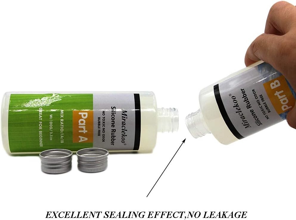 EASY TO USE - No special skills or tools are needed.The silicone mold making kit includes part A and part B, the mixing ratio is 1:1 by weight. Pour the Part A and Part B together, then stir 5-6 minutes, make sure to stir the mixture thoroughly for better results SAFE - Our silicone rubber is made of safe silicone material, high-quality,non-toxic and odorless, very flexible, soft and transparent PREMIUM - Our silicone rubber with self-debubbling,the bubbles will automatically disappear within 2 hours, no vacuum degassing is necessary. The completely cure time is about 4-6 hours at room temperature, it varies from your mold size and thickness.Please note:The curing time is affected by the temperature. If the curing is too fast, it can be slowed down by cooling before use. If the curing is too slow, it can be accelerated by heating WIDELY USE - Excellent for making resin molds, wax molds, candle molds, soap molds, casting molds and so on. ATTENTION:Not for making food mold use PLEASE NOTE:mixing without using silicone cup and molding without using silicone mold.Because they're silicone, they will fuse PLEASE NOTE:certain chemicals can inhibit the curing process,and sulphur is one of them.Don't use sulphur plasticine clay
