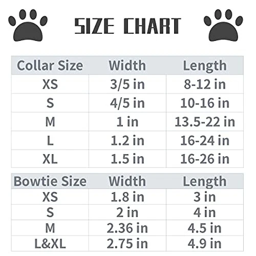 Return Policy Fast Delivery Trusted seller Bowtie Dog Collar - Comfortable Silk Boy Dog Collar with Detachable Bow Tie for XLarge Dogs, Neck 16-26 Inches Product Description FITS DOG NECK 16~26 INCHES - Please measure the dog or cat neck and choose proper size according to the size chart (the last picture) before buying. PRETTY BOWTIE DESIGN - The bow tie is attachable to the collar for dressing up. It is detachable and can be taken off to be used on any other collar. SILK FABRIC - Soft and smooth texture, breathable and comfortable feeling, bright color HAND WASH - Hand Wash do not Rub, Line Dry in Shade, Do not Twist or wring OCCASION - Ideal for family photos, special holidays, birthday parties, weddings and so on. dog collars are great gift ideas for dressing up your dog. Shipping Returns Payment Shipping Shipping is FREE to all addresses other than APO/PO boxes in the lower 48 states. All our stock ships from US-based warehouses. Shipped via USPS or UPS (depending on location and package weight) Unless stated otherwise, all orders will ship within 24-72 hours of your payment being processed. Check our feedback to see the great reviews of FAST shipping we offer. Returns Seller does not accept returns Payment We currently accept payment via eBay managed payments only. Once payment is cleared, we will dispatch your shipment within 1-3 business days. Please refer to the "Shipping" tab for more information regarding shipping speed to your destination.