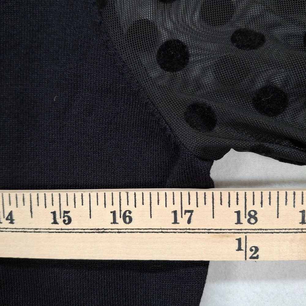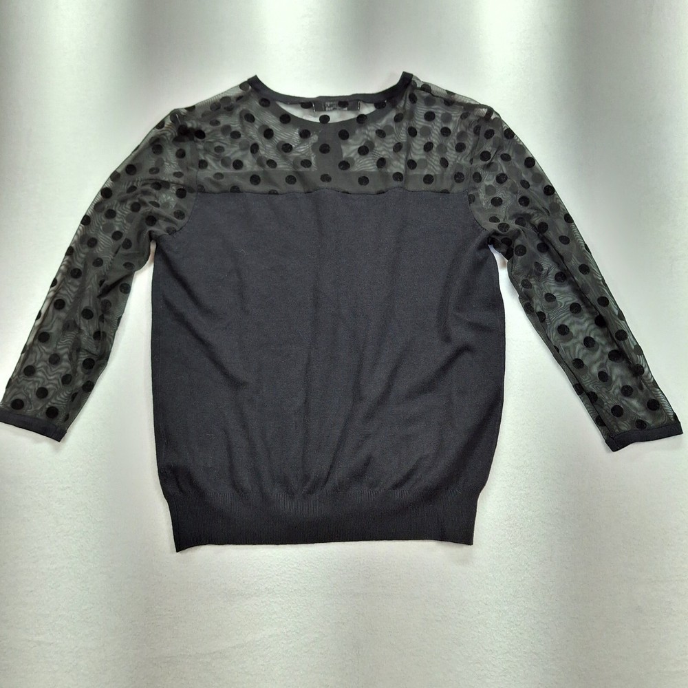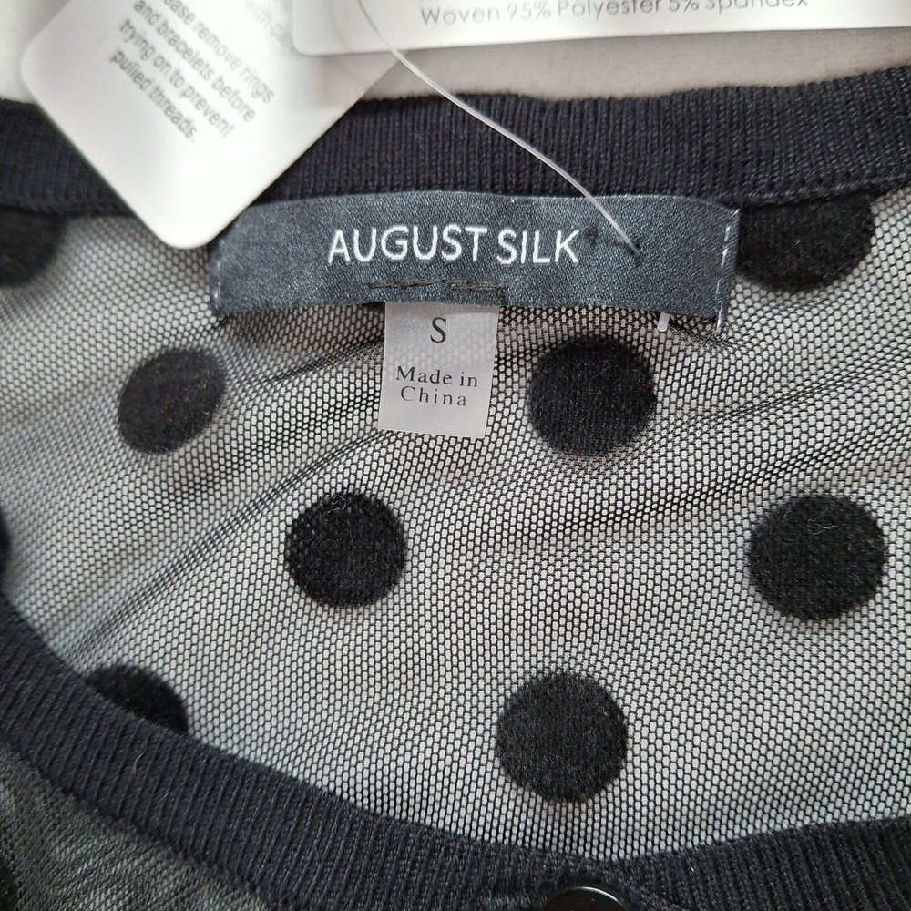 August Silk Cardigan Sweater Women Small Black Button Front Sheer Polka Dot pit to pit 17.5" shoulder to hem 22"