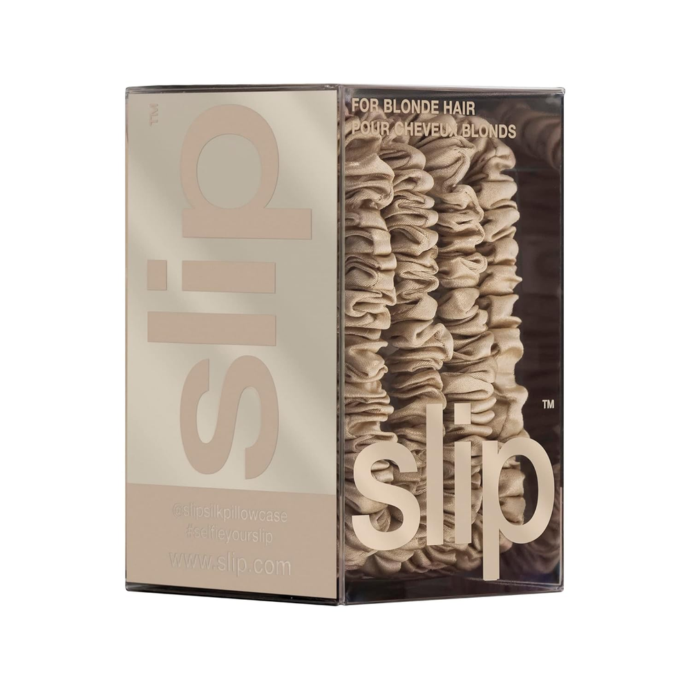 About this item Upgrade your hair tie game - Slip's silk hair ties are the beauty secret of celebrity hairstylists, dermatologists, beauty experts and even a supermodel or two. Slip pure silk sleep scrunchie hair ties with mulberry silk are the perfect addition to your beauty routine. They make an excellent gift for women and you can discover more gift sets and bundles at the Slip Amazon store. Traditional hair ties can tug on delicate hair which can lead to damage and breakage. Our large, midi and skinny silk scrunchies are gentle on hair, and we make our scrunchies non slip so they stay in place without the tugging of cotton scrunchies. The Slipsilk difference - Slip pure silk hair tie products are made using Slipsilk. Specially-commissioned and made to our exacting standards, the Slipsilk used for our silk scrunchies for women and sleep hair tie products has been developed and refined for over ten years to provide the ultimate combination of shine, thickness, softness, and durability. This set includes skinnie scrunchies -- perfect to create all of your favorite hairstyles. From the brand Shop the Slip Store Product Description