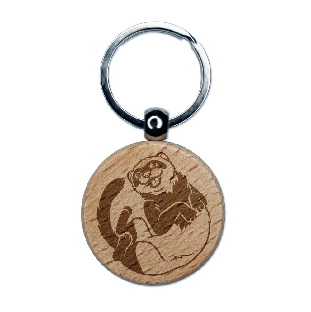 Silly Ferret on Back Engraved Wood Round Keychain Tag Charm