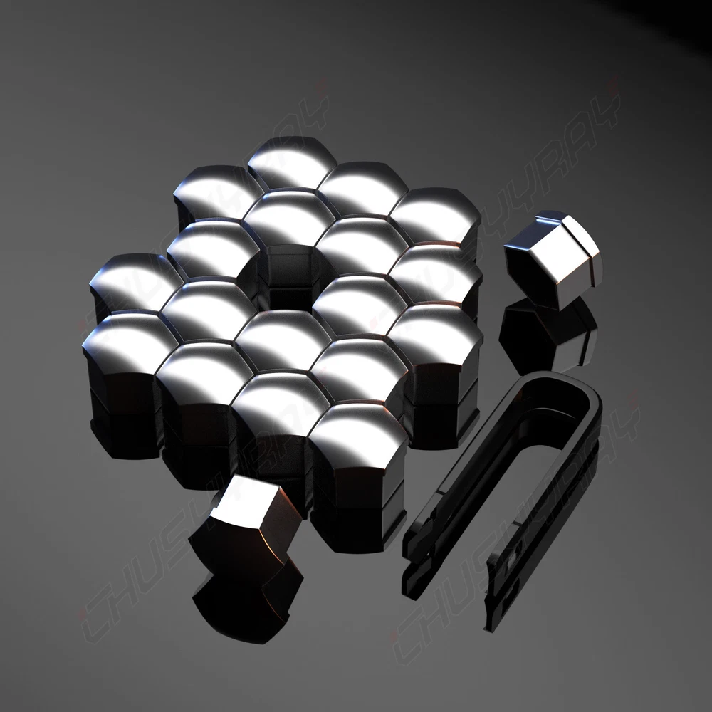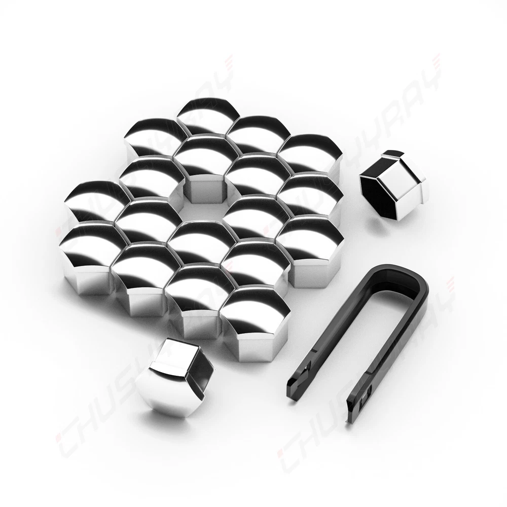 If the product is not suitable or there is a quality problem, please contact our customer service directly to solve the problem. We will give you a satisfactory solution. Feature Environmentally friendly nylon material. Prevent the screws from rusting. Durable and Toughness, not affected by climate. Decorate car appearances, make your car particular and unique. Easy to install, just press the nut covers straight to the bolts. Specifications Type:Wheel center nut cap Material:high quality plastic Style: Hexagon Color: Electroplating silver Size:17mm Compatibility It will fit for the car with 6 wheel lug s 17mm bolt cover fits most of 3 and 5 door hatch and sedan Please measure the size of your existing wheel bolt before purchase. Package Included 20 X Nut Caps 1X Removal tool Note: Due to manual measurement , there may be 0.1cm deviation exist,hope you can understand. There are slight difference between the picture and the real item caused by light brightness,hope you could understand. On Feb 19, 2025 at 01:20:21 PST, seller added the following information: