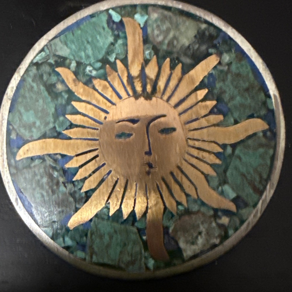 HomeSilver 2-Tone Vintage Mexico Turquoise Gem Inlay Sun Face Brooch