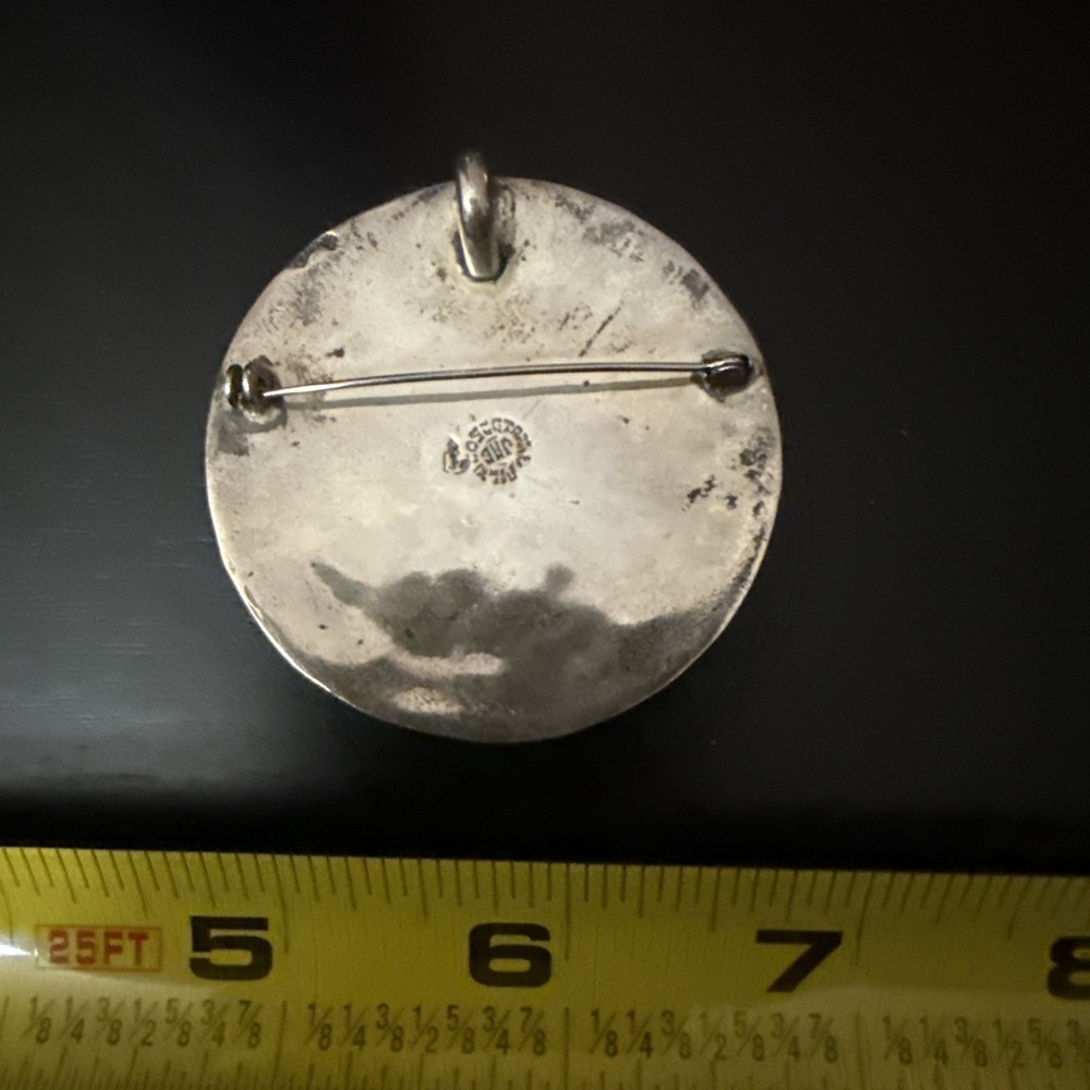 Theme:ArtMetal:Sterling SilverBase Metal:Silvergtin13:NAColor:SilverMain Stone Color:TurquoiseUPC:NAPurity:925Main Stone:TurquoiseMaterial:GemstoneFeatures:Nickel-FreeHandmade:YesVintage:YesMaterials sourced from:MexicoJewelry Department:FineMain Stone Treatment:Not EnhancedCountry of Origin:MexicoOccasion:BirthdaySecondary Stone:No StoneMetal Purity:925Type:BroochDepartment:Unisex AdultsAntique:NoSigned:YesMain Stone Creation:NaturalBrand:Sterling