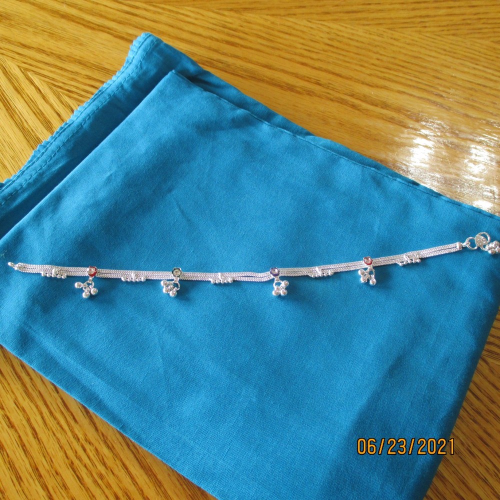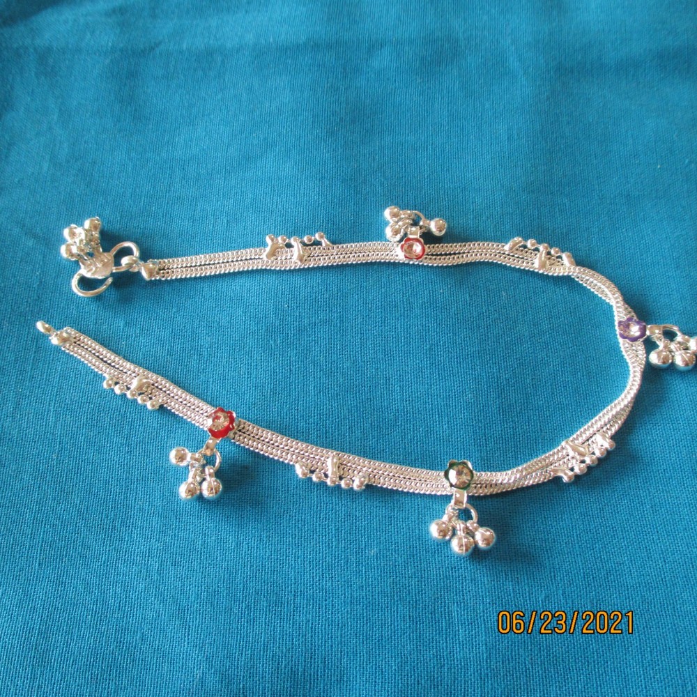 This listing is for New, Silver Blend one Payal Anklet. It's about 10" Long and 1/2" Wide in Size. If you don't let water touch it, then it will stay like that for long time. Please see Photos for more Details.
