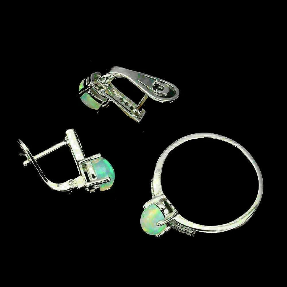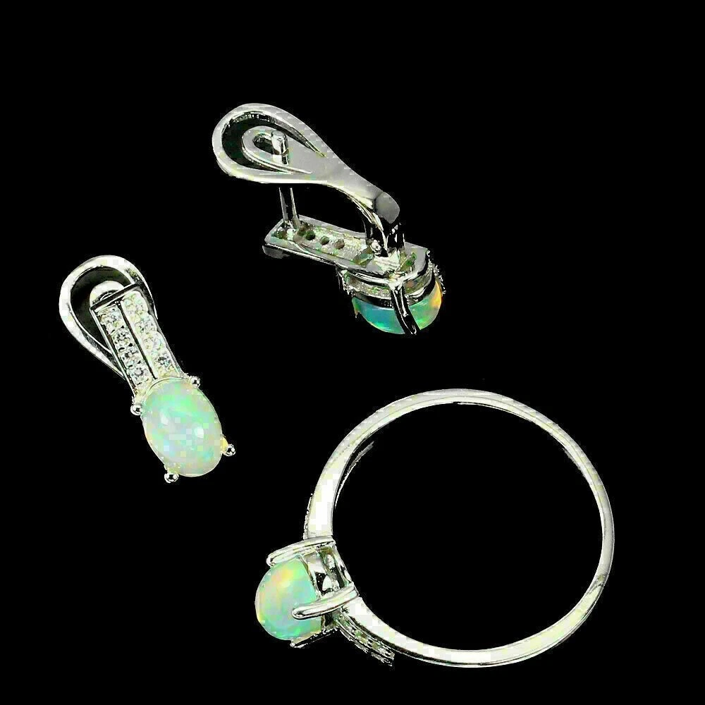 Silver Earring Ring Opal Genuine Mined Gems Solid Sterling Q 1/2 US 8.5