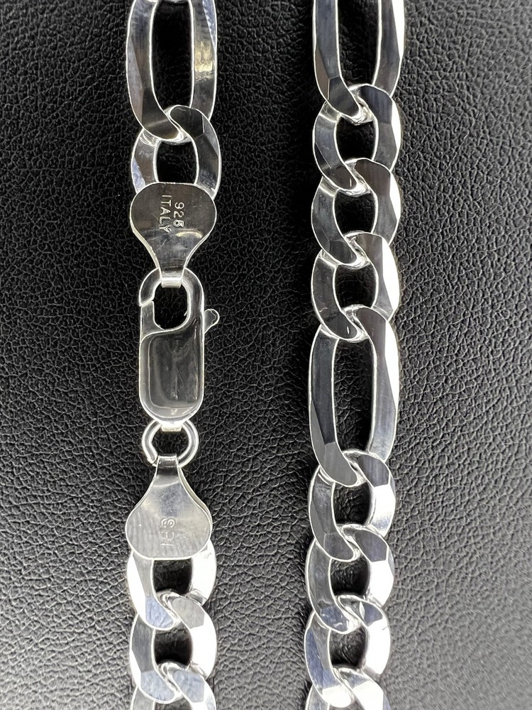 Silver Figaro Cuban Link Chain with Diamond-Cut Detail