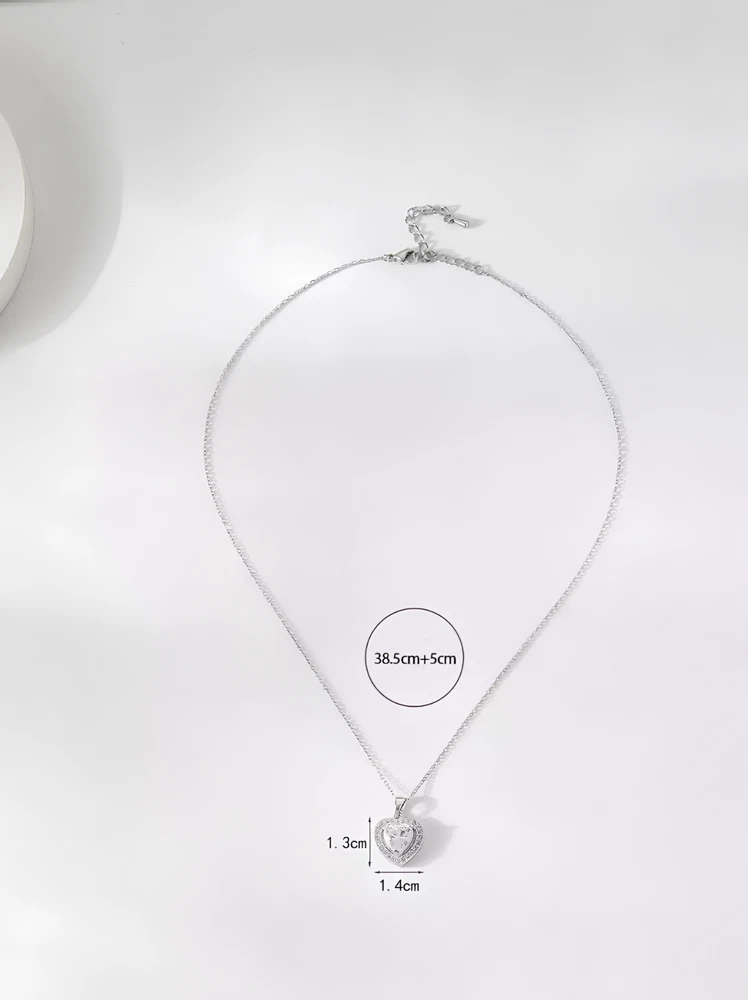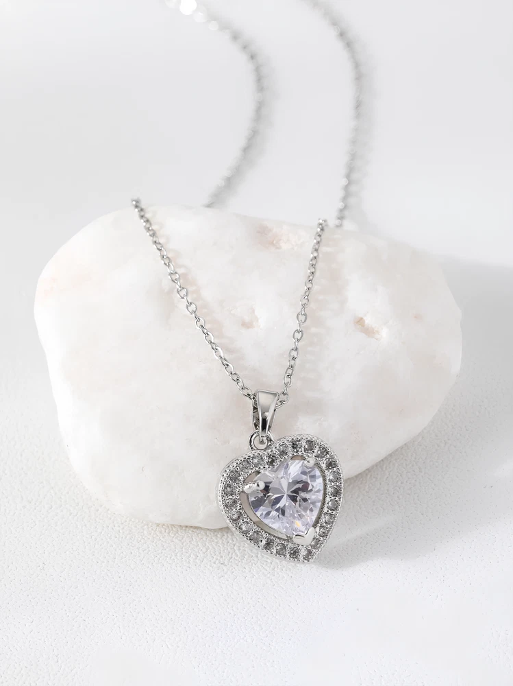 Silver Heart Pendant Necklace Women Daily Wedding Stainless Steel Chain Jewelry
