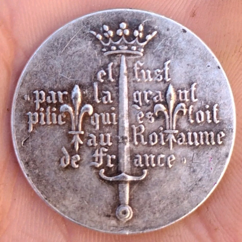 This rare and beautiful silver coin features the iconic image of Joan Of Arc the legendary French warrior and Christian martyr. Minted in the early 1900s this is a must-have for any collector of religious medals. The coin features intricate details of the Christian faith and is a true treasure for those who appreciate the beauty of religious artifacts. Its authenticity and rarity make it a valuable addition to any collection, especially those focusing on religion and spirituality, and it is sure to be a conversation starter amongst fellow collectors. Don't miss out on the opportunity to own this stunning piece of history. Whether you're a fan of Christianity or simply appreciate the artistry of medieval coins, this Joan of Arc coin is a must-have.
