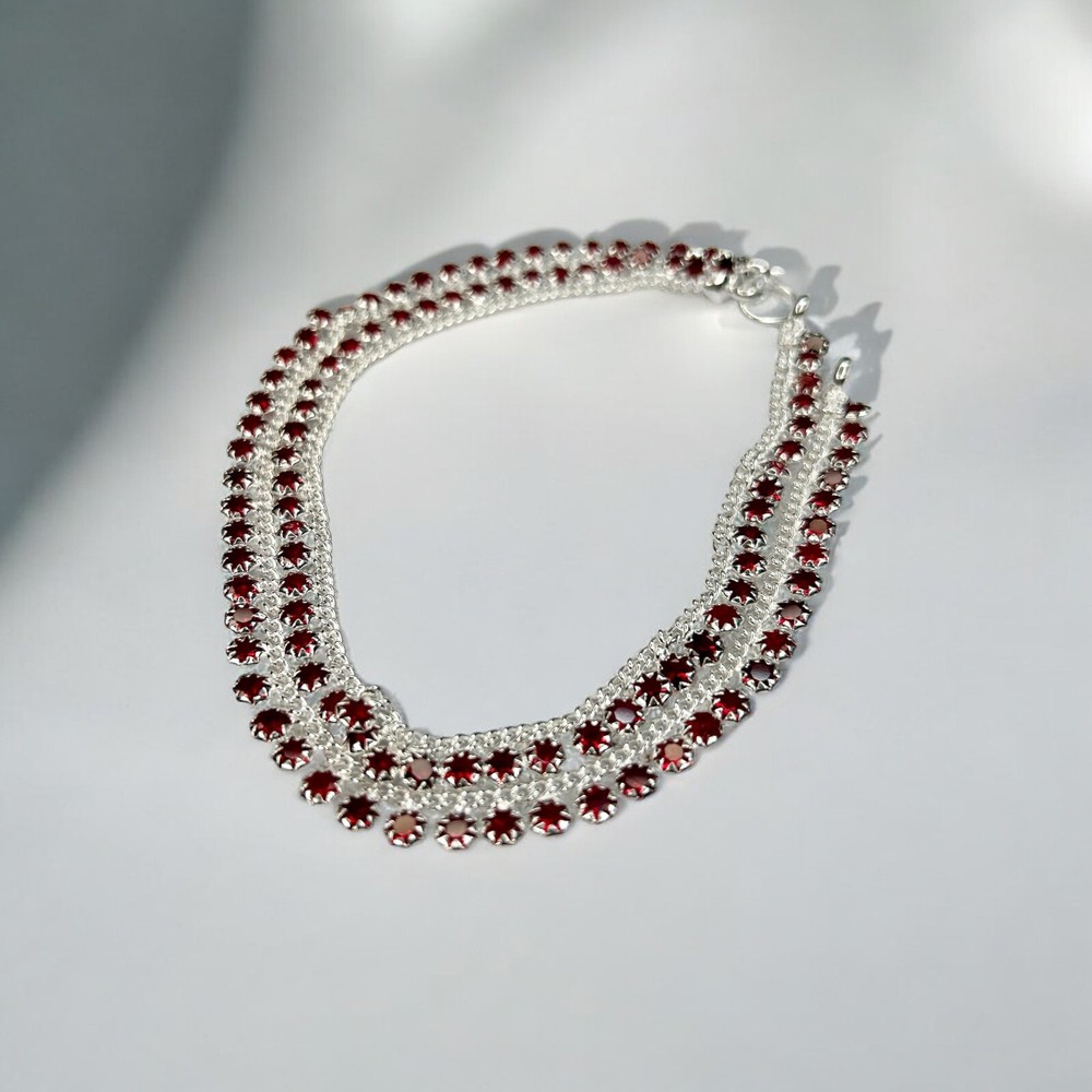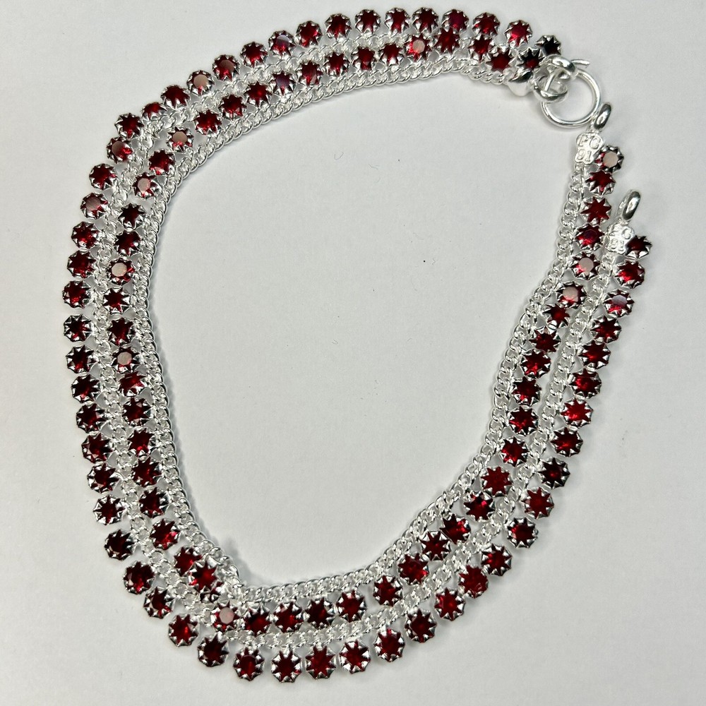 This silver Payal is a must-have for any jewelry collection. Crafted with high-quality silver, it is durable and long-lasting. The Payal is perfect for any occasion and can be worn alone or paired with other accessories for a more unique look. Its sleek design is sure to catch the eye and add a touch of elegance to any outfit. Whether you're looking for a gift or just treating yourself, this Payal is a great choice. Weight of this Payal is 45.3 gm. Traditional Indian Payal design. Comes as pair.