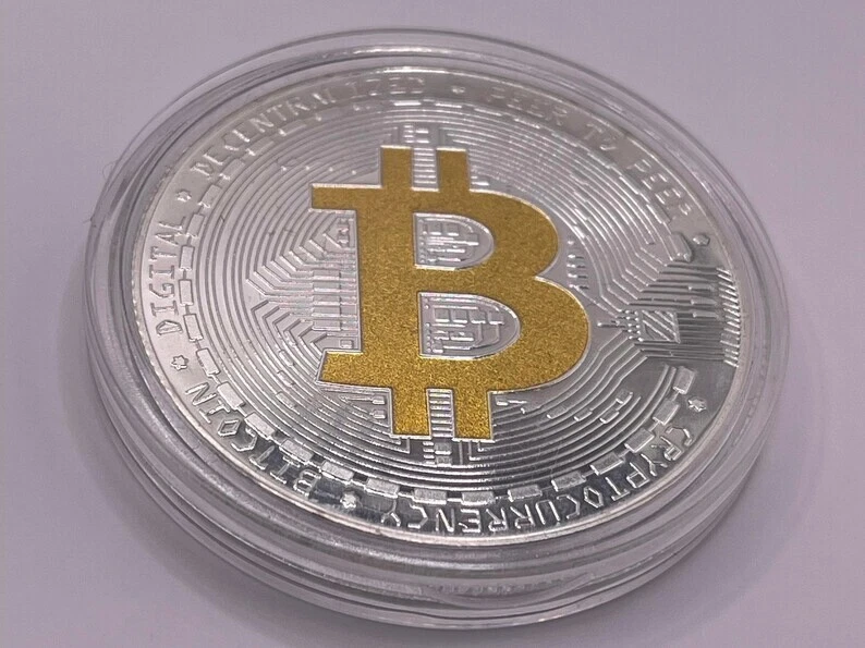 This is for a brand new collectible Bitcoin silver plated coin. It is only a collectors item and does not represent the value of bitcoin. Comes with a protective plastic cover, feels solid, and has good weight. It will be shipped via USPS with no tracking number in order to pass along the savings to you! Size: 1.57”(40mm) diameter 0.06”(1.5mm) thick Well protected by hard plastic covers Made of high-quality ferroalloy material high strength wear-resistant rust-proof durable Double-sided design A truly American thoughtful gift for yourself, your friends, and your family. Elevate Your Crypto Collection with our Metal Bitcoin Coin! Discover the essence of digital currency in physical form with our meticulously crafted Metal Bitcoin Coin. Whether you're a seasoned cryptocurrency enthusiast or a curious newcomer, this exquisite collectible encapsulates the revolutionary spirit of Bitcoin. Key Features: Premium Craftsmanship: Our Metal Bitcoin Coin is a testament to quality. Meticulously minted from durable and long-lasting metal, it boasts an exquisite finish that showcases intricate details. Intricate Design: The coin's design pays homage to the iconic Bitcoin logo, featuring the recognizable "B" symbol on the front. The reverse side showcases the intricate network of blocks and chains, representing the blockchain technology that underpins cryptocurrencies. Perfect Size: With a size that fits comfortably in your hand, it's the ideal addition to your collection or a thoughtful gift for fellow crypto enthusiasts. Universal Symbol: Bitcoin is more than just a digital currency; it's a symbol of financial innovation and decentralization. Displaying this coin can serve as a conversation starter and a reminder of the transformative power of blockchain technology. Perfect Gift: Looking for a unique and meaningful gift for a crypto-loving friend or family member? Our Metal Bitcoin Coin makes for an exceptional present, whether for birthdays, holidays, or special occasions. Why Choose Our Bitcoin Coin?: Safe and Secure: Unlike digital assets, this physical coin requires no passwords or private keys. It's a tangible reminder of the security and control you have over your investments. Collectible Value: As Bitcoin continues to gain prominence in the world of finance, owning a physical Bitcoin collectible becomes more than a statement—it's a piece of history. Conversation Starter: Display this coin proudly on your desk, in your office, or as a part of your crypto-themed collection. It's sure to spark interesting conversations and connections. Join the ranks of cryptocurrency enthusiasts who appreciate the significance of Bitcoin beyond its digital form. Our Metal Bitcoin Coin is a tangible representation of the future of finance, innovation, and decentralized empowerment.