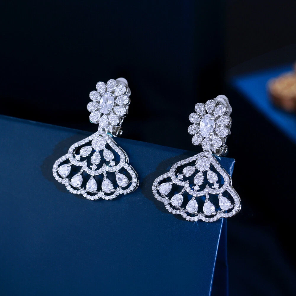 Silver Plated CZ Fan Shaped Drop Clip On Earrings No Ear Hole Without Piercing Specifications: 1. Condition: New 2. Material: Cubic Zirconia 3. Earring Size : 3.4 cm/1.4 inch*2.4 cm/0.95 inch 4. Wearing Occasion: Wedding / Daily Wear / Office / Anniversary / Party/ Engagement / Christmas 5. Fit for: Women ,Bride , Bridesmaid , Girls , Mother , Wife , Lover , Fiancee , Friends . Features: 1. 100% Brand new and high quality. 2. Brillant Simulated Diamond - Top Level Cubic Zirconia. Excellent Cut Simulated Diamond. Enjoy the Dazzling Sparkle from Cubic Zirconia Clip on Earrings. 3. Our Fashion Clip on Earrings are suitable for all non Pierced Ears. 4. Perfect for Various Occasions: Ideal for Bridal, Wedding, Prom, Parties, Holidays, Special Occasions, Birthday, Valentine's Day, Mother's Day or Anniversary Gifts. Package Includes: 1 Pair of Clip on Earrings Payment Delivery details Terms of sales & Feedbacks About us & Contact us Our commitment Payment 1. We only ship item to your Ebay verified address . Please Make sure all address are the same 2.Please leave note in ebay when making the payment if you have any special request (colors/size). Delivery details We only send items to the registered eBay address.Items will be shipped within 2 business days from the date payment is received (not include public holiday and weekend) . As per eBay regulations, import duties, taxes, and customs charges are the buyer's responsibility. Please check with your country's customs office to determine what these additional costs may be prior to bidding or buying. Terms of sales & Feedbacks After-Sale Please contact us to request a return/replace/refund authorization .It will be best if you use ebay message to contact me. 1, Return and replacement request is available only the requests within 30 days after parcel received. 2, Returning the item as the same condition as received. Situation and solution Defectives ---Please contact us and provide a photo of the defective part. After situation confirmed,we will offer you refund/return/replacement according to the situation Not as Described ---Please contact us and provide a photo of the wrong part. After situation confirmed,we will offer you refund/return/replacement according to the situation Not Received ---Please undersatnding shipping on the way was out of our control ,because of the busy shipping season,holidays,bad weather or force majeure etc. It may be delay for days. But if it took too much time and not deliveried, Please message me, I will offer you solution for it. Feedbacks 1. If you are satisfied with our service, please leave us a + Good feedback and rate the details of the transaction (DSR) with a. . When you rate the shipping time part please take international transit into consideration.] Your recognition will make us more confident to develop business and serve you better. 2. Please contact us first if you have any problem with the items,we will solve it in time ! 3. Please do not leave Neutral or Negative Feedback before you contact us, Thanks For Your Business ! About us & Contact us Working time: Chinese time(Eastern eight zones):Monday to Friday ,9:00 am to 6:00 pm. We do not work on chinese legal holiday. Message reply: We will reply all messages within 24 hours of business time. Please contact us via ebay message, it was the best way for both you and us to solve problems. Any questions or anything you need, please feel free to contact us. Our commitment 1.Wholesale price will be offered to you if you need in bulk ! 2.About Size