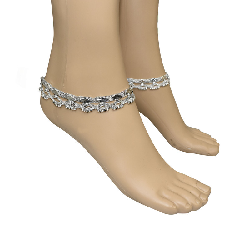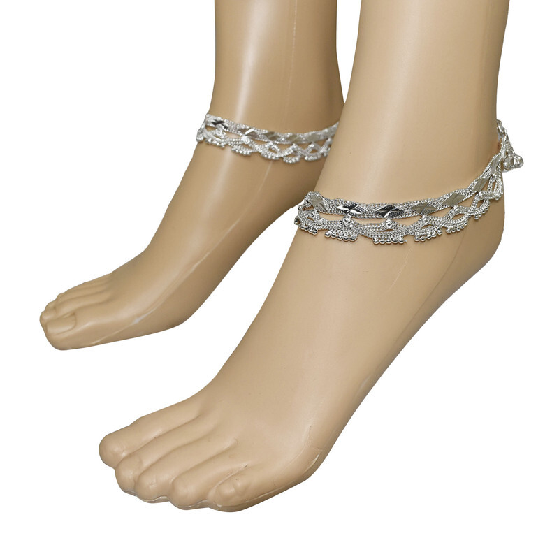 Women's Anklet Silver Plated Sandals Tone Bell Charms Payal Foot Chian Bracelete